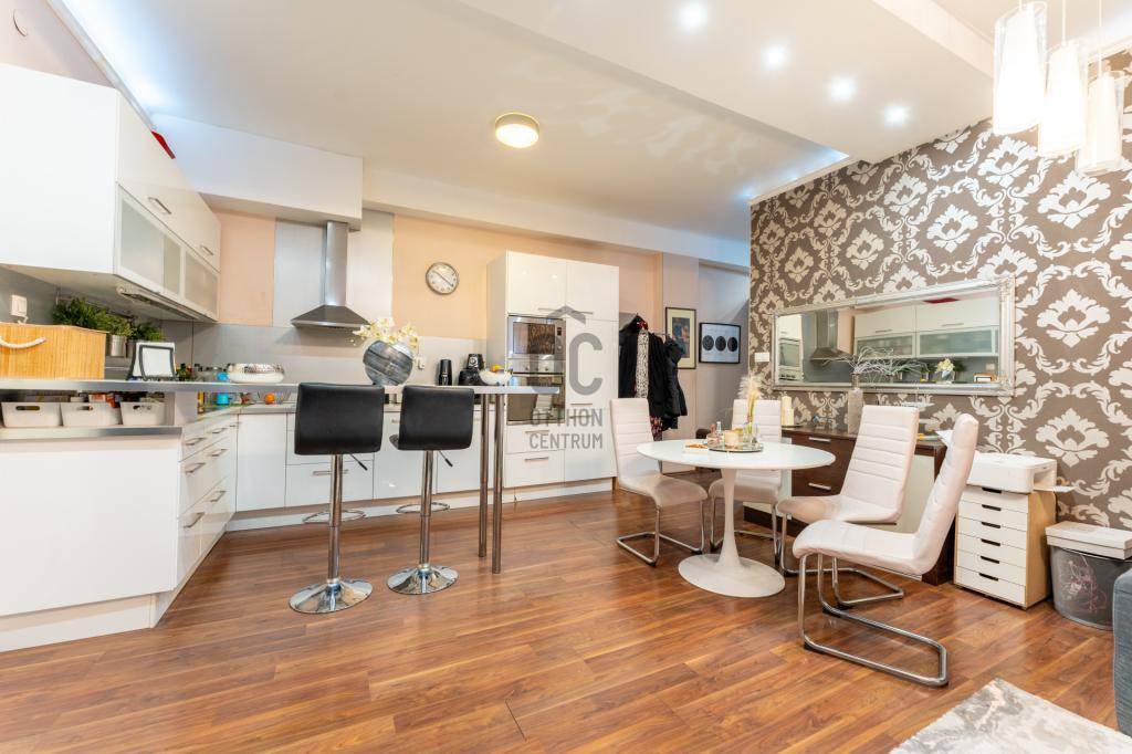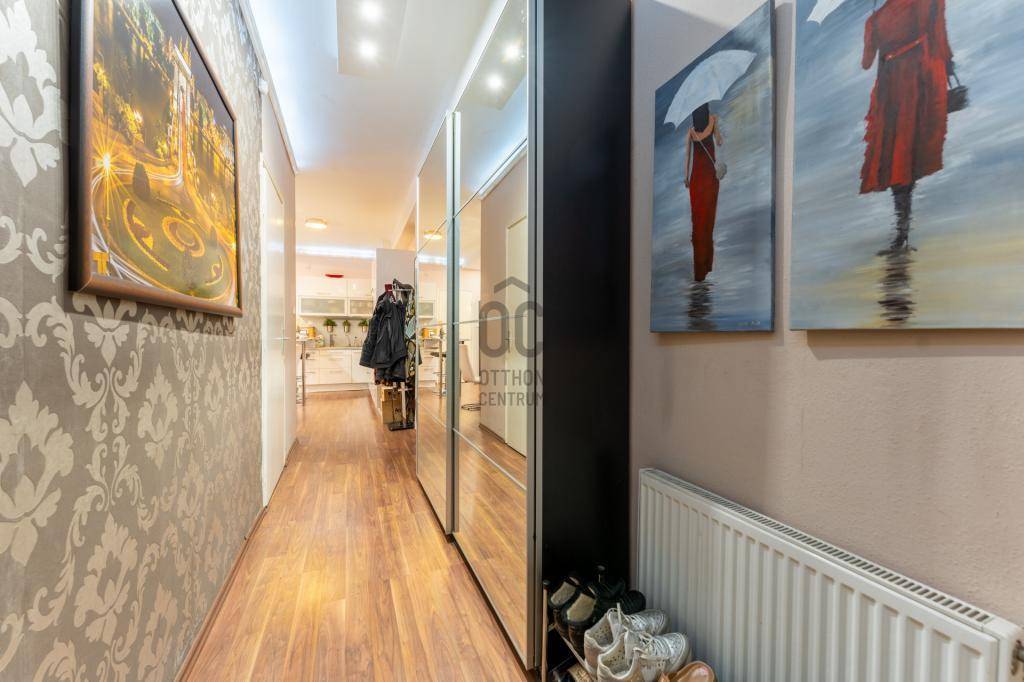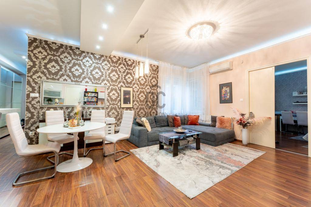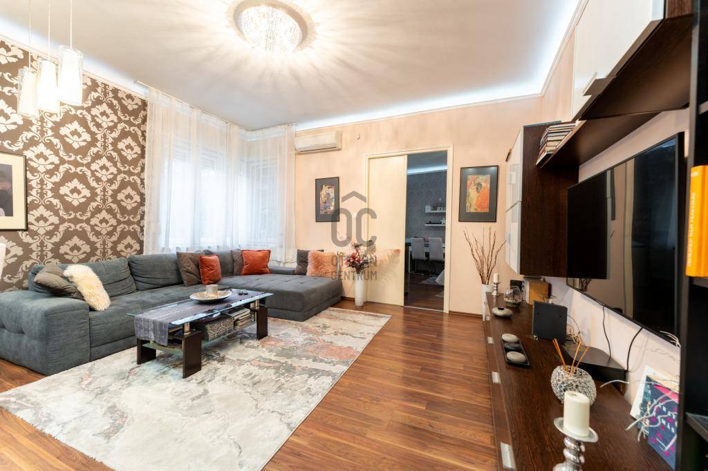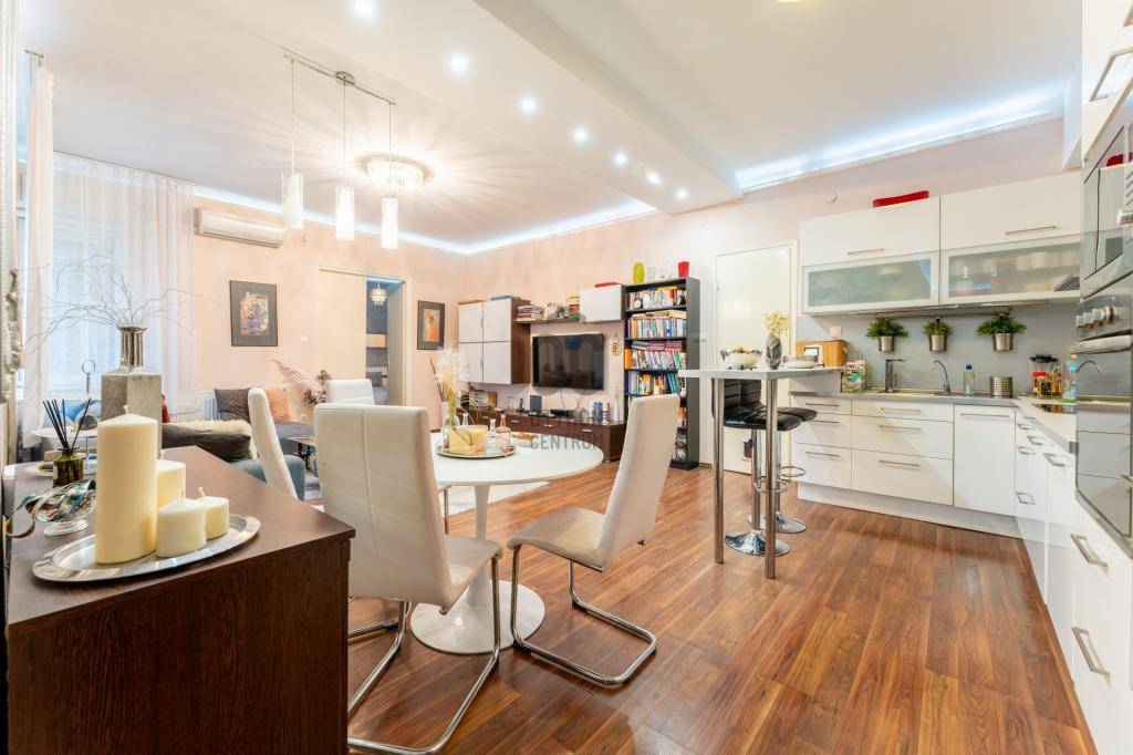 A műszaki tartalom kiemelkedő: teljes körű felújítás történt, beleértve a víz- és villanyvezetékek cseréjét, új radiátorokat, nyílászárókat, valamint biztonsági rendszert. A nappali klimatizált, a konyha gépesített, modern és magas fényű bútorokkal felszerelt. A lakás energiahatékony LED világítással, redőnyökkel, szúnyoghálókkal, riasztóval és biztonsági bejárati ajtóval rendelkezik. Igény esetén a teljes bútorzat is megvásárolható.