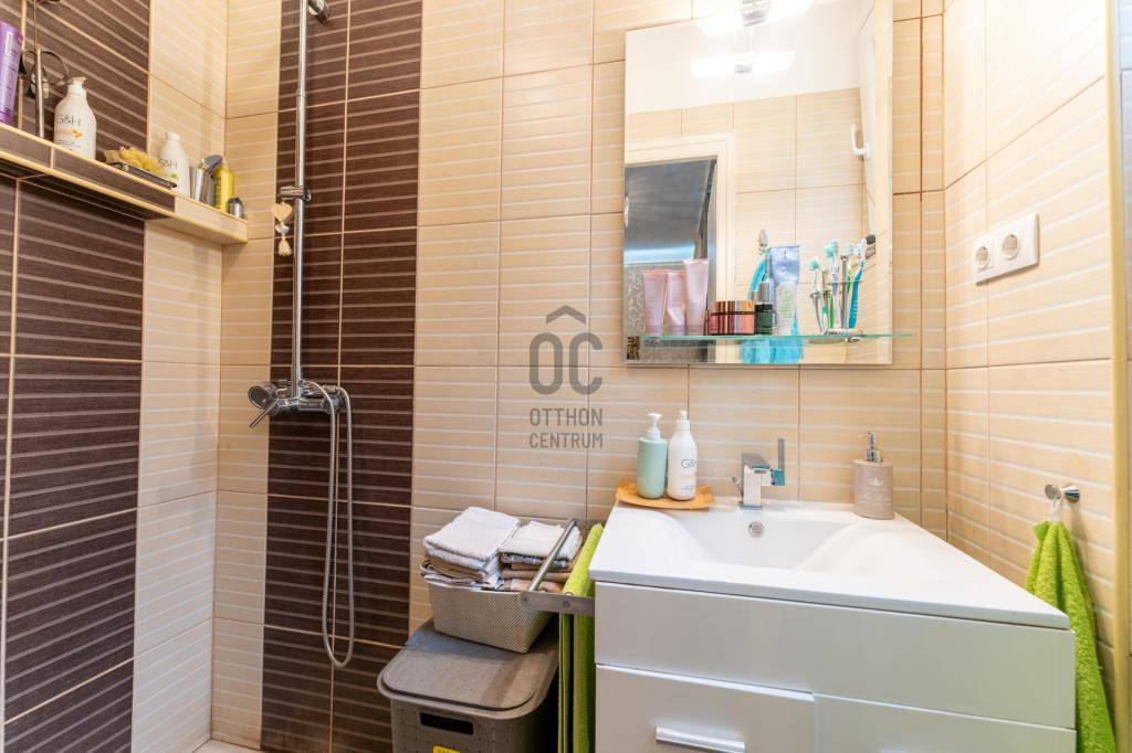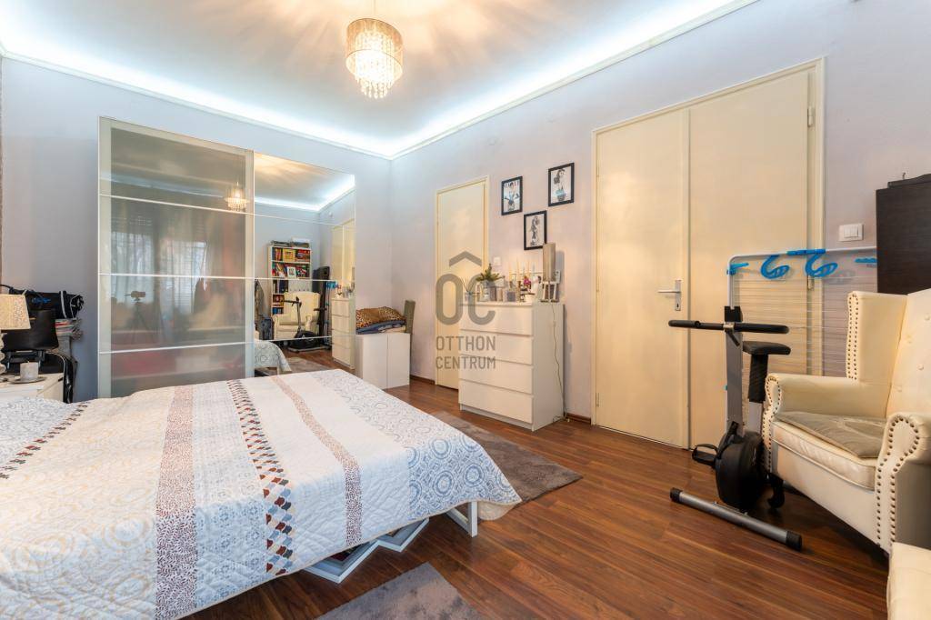 A lakás elosztása ideális és jól átgondolt: amerikai konyhás nappali étkezővel, két külön nyíló hálószoba, egy kádas fürdőszoba WC-vel, egy zuhanyzós fürdőszoba, külön WC, előszoba és háztartási helyiség található benne. Az ingatlanhoz tartozik egy 4 m²-es erkély, valamint egy 4 m²-es, zárható pincei tároló is.