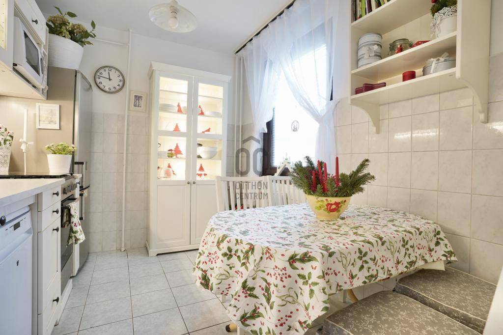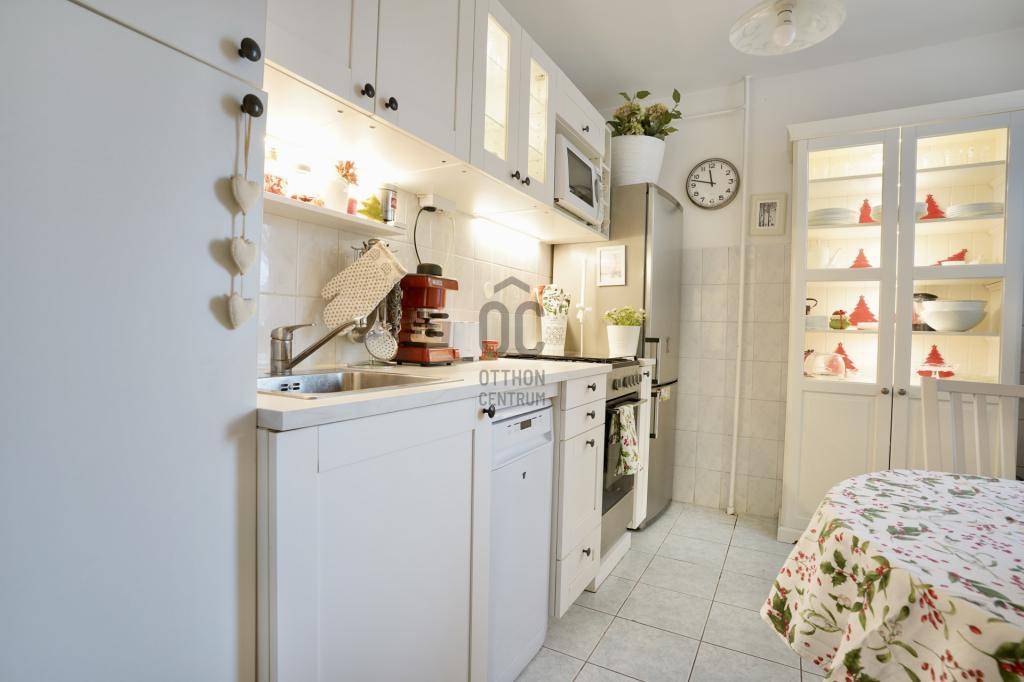 - megújult konyha: oda tervezett konyhabútorokkal, kombinált tűzhely, mosogatógép, hűtőszekrény, mikróhullámú sütő,