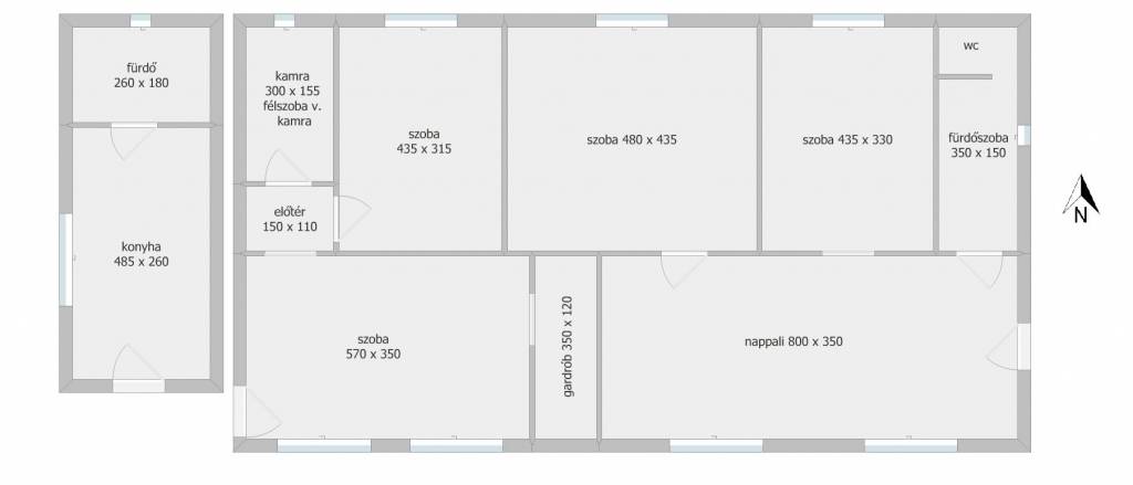 Az ingatlan egy válaszfal kibontásával, egyszerűen nagy méretű Csok-ra is alkalmas házzá alakítható vissza.