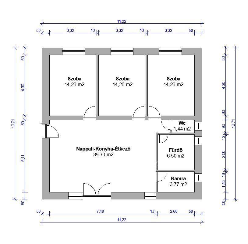 A jelenlegi tervek szerint 3 szoba, amerikai konyhás nappali, fürdő, külön wc illetve kamra tud megvalósulni a nettó 94 nm-en.