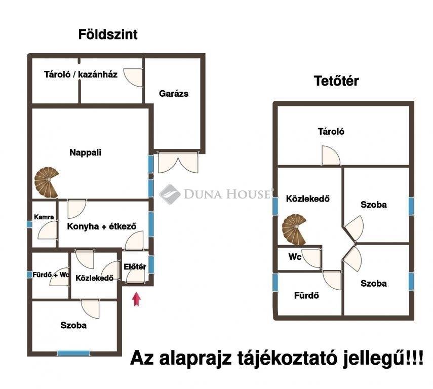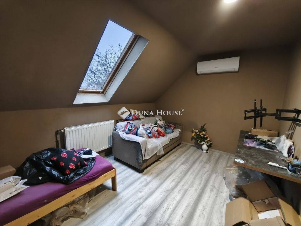 - Nappali + 3 szoba : 2 tetőtéri szoba (ebből 1 felújítandó + további szoba is kialakítható, így akár a nappali mellett 4 szobássá is alakítható) valamint 1 földszinti szoba (felújítandó)