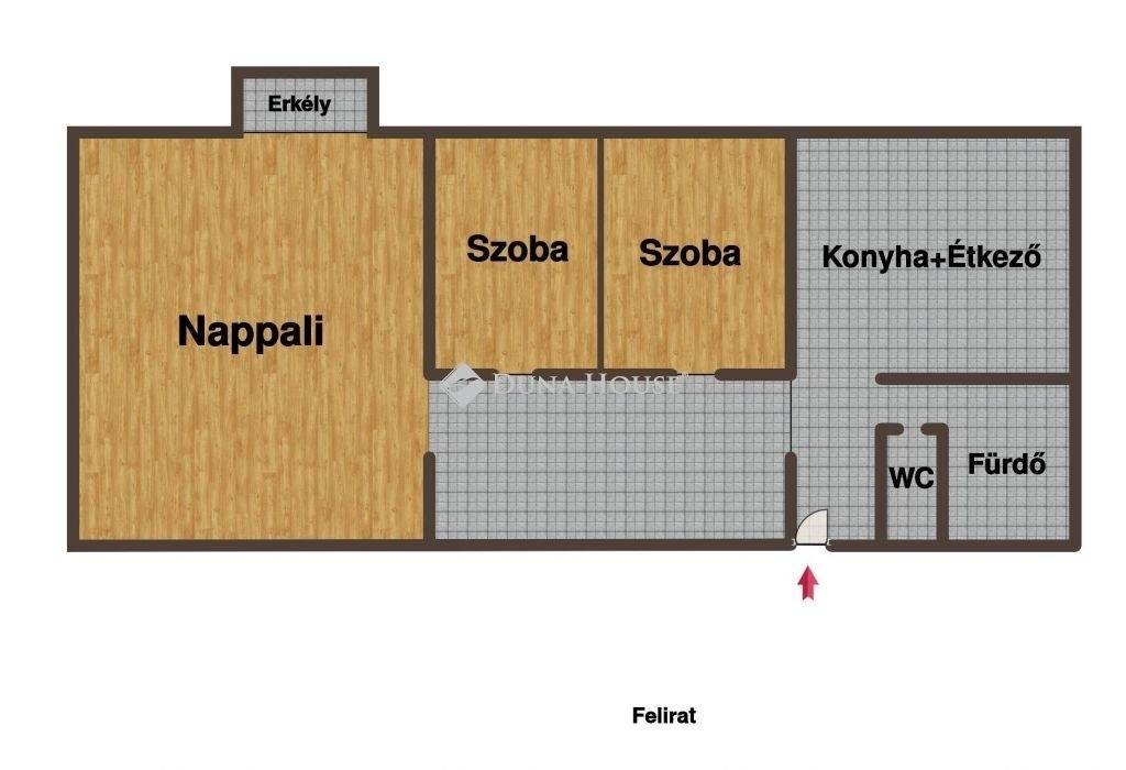 Helyiségei::Nappali-2 szoba-Fürdő (káddal)-Wc-Konyha+Étkező.