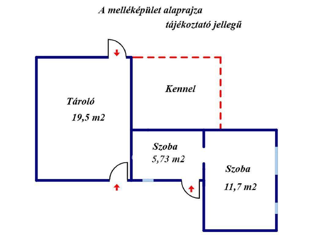 A különálló könnyűszerkezetes kivitelezésű melléképületben kettő szoba, egy tároló és egy kennel lett kialakítva.