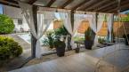A két ház között 7mx 3,5 m- es 1,5 m mély fedett medence található gyönyörű parkosított környezetben.