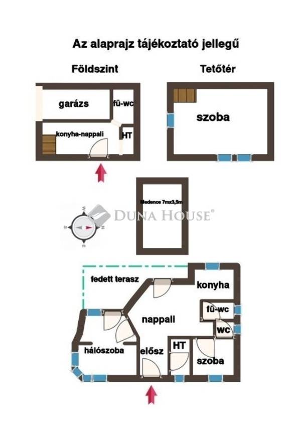 A másik ház 78 m2- es 20 m2- es garázs, konyha, nappali, Fürdő-wc, háztartási helyiség valamint a tetőtérben 35 m2- es egy légterű szoba kialakítással.