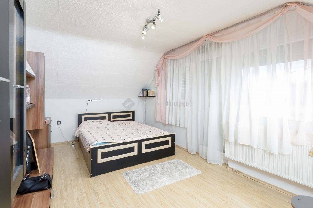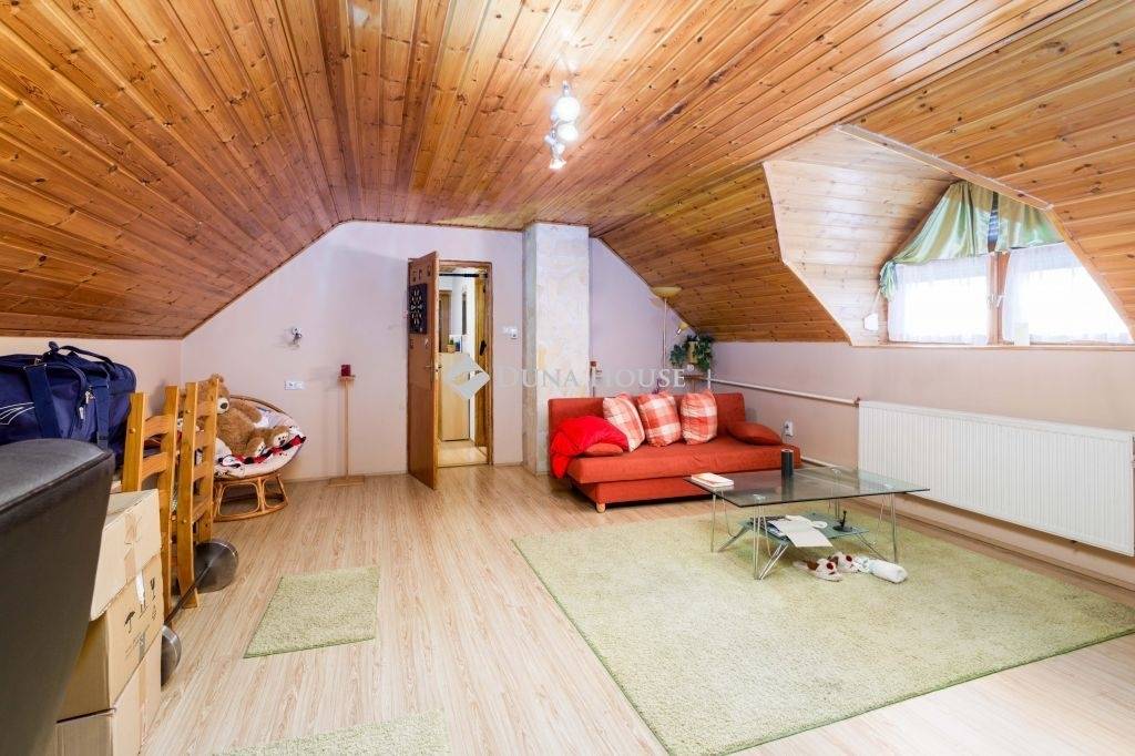 Gyönyörű falépcsőn megközelíthető tetőtérben egy tágas nappali és két külön nyíló hálószoba található, az egyikhez erkély is tartozik, valamint egy gardróbszoba. A felső szint esztétikai felújításra szorul(hat) az alsó szintet viszont folyamatosan karbantartották, újították.
