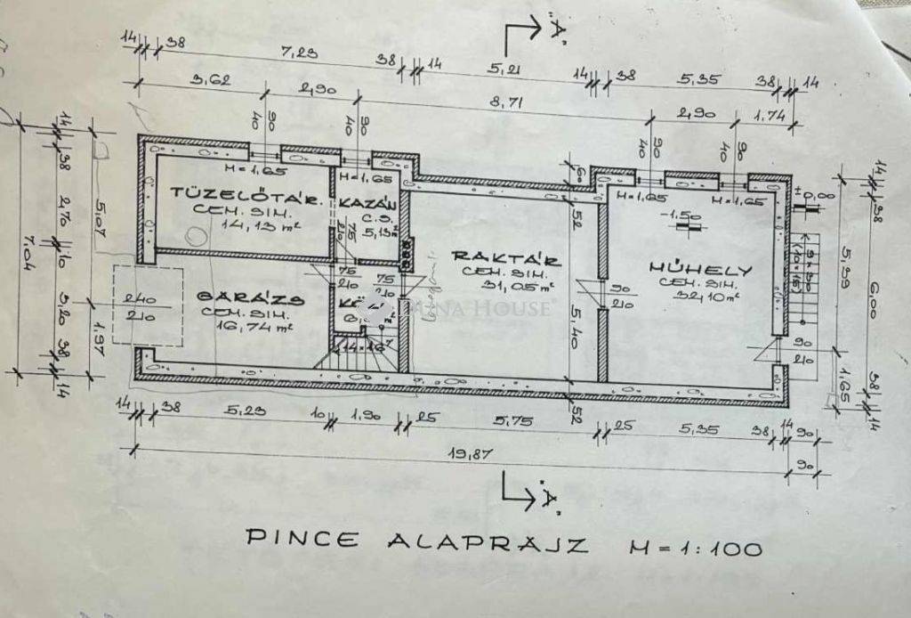 A ház teljes egészében alápincézett, több helyiségből álló, jól kihasználható térrel: garázs, műhely, valamint tároló is helyet kapott benne.