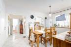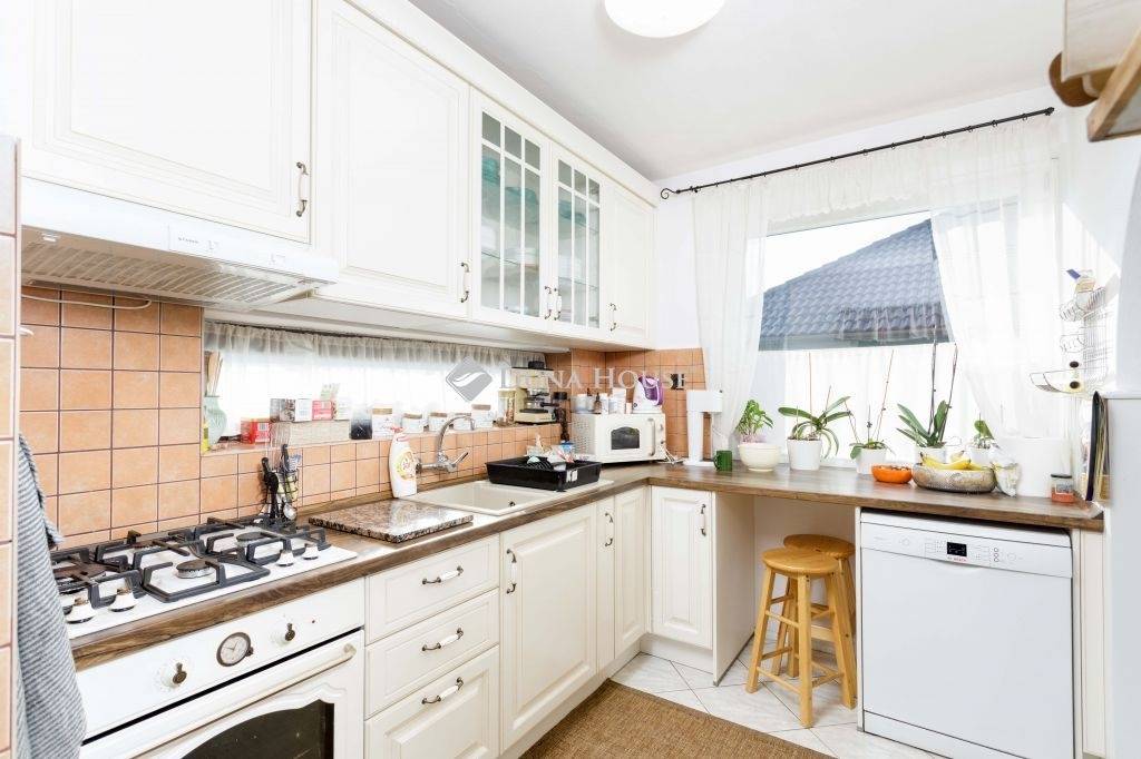 A földszinten található egy világos nappali, amely közvetlenül kapcsolódik a teraszhoz, valamint egy konyha+étkező, előszoba, közlekedő, hálószoba, és abból nyíló mosókonyha + gardrób helyiség, mely korábban gyerekszobaként funkcionált.