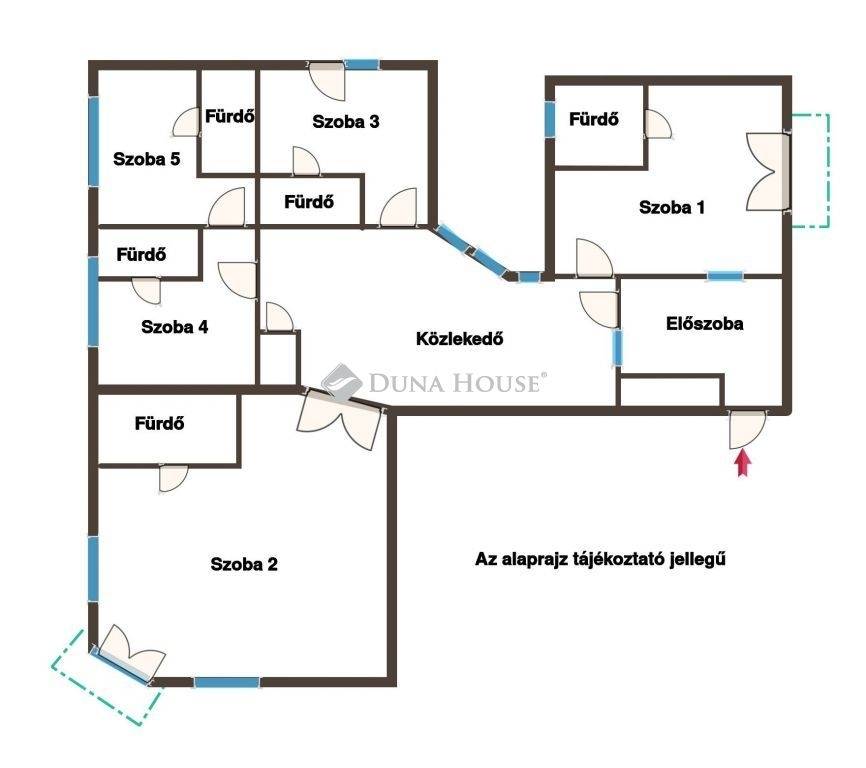 Az ingatlan öt különbejáratú szobából áll, amelyek mindegyikéhez saját fürdőszoba tartozik. Két szoba erkéllyel is rendelkezik.