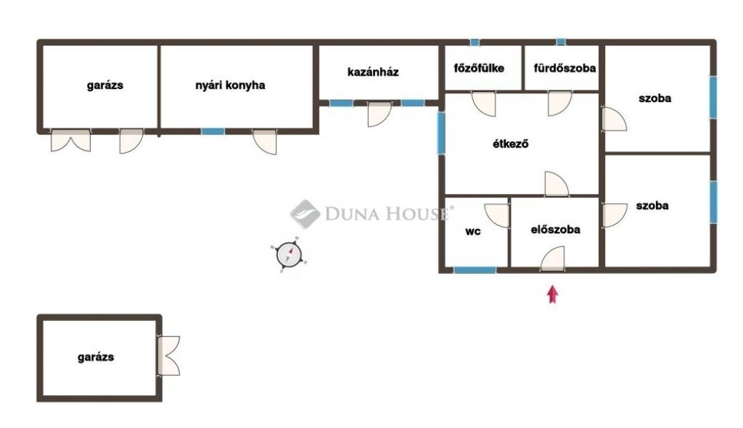 -lakótér: 2 szoba,étkező,főzőfülke,fürdőszoba, külön helységben toalett, előszoba