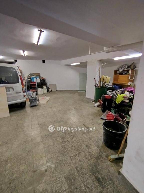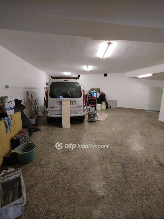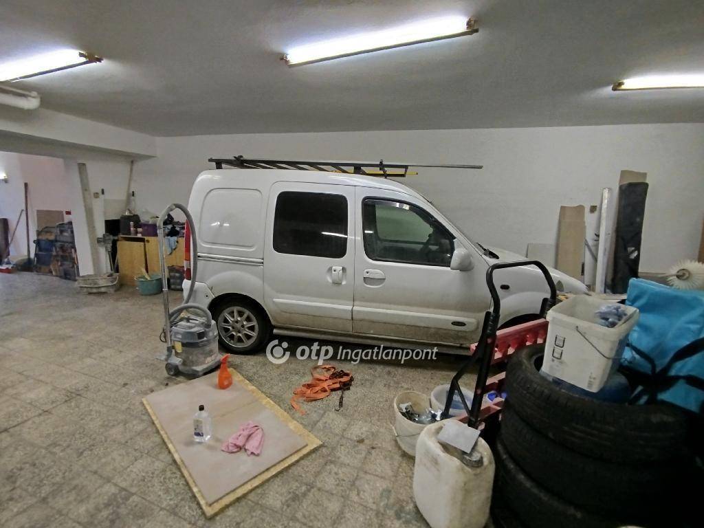 3 autó elfér úgy, hogy nem akadályozzák egymást a ki-be közlekedésben. Negyedik is elfér a folyosón. A képen látható fehér autó egy aknán áll. Víz villany, szennyvíz van. A felette levő háztól külön vízórával ellátott WC és kézmosó is van. Szintén külön mérője van a villamos rendszernek. Jelen pillanatban a tulajdonos raktárnak használja, de két hét alatt kipakolja, amikor el lesz adva.