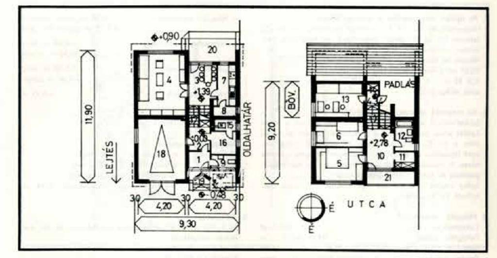 Földszint: 3 különnyíló szoba, konyha spájzzal, zuhanyzós fürdő és külön WC. A nappali közvetlen kapcsolatos egy tágas, 20 nm-es pihenőterasszal.