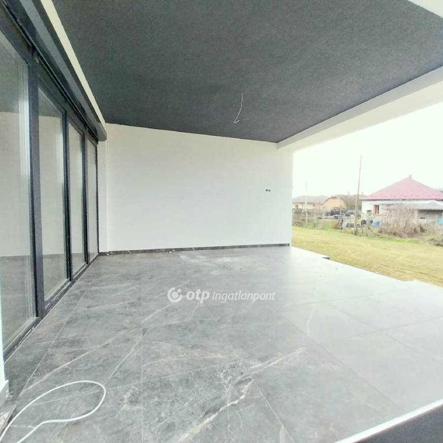 Tágas, 45,8 m2-es,- világos, amerikai konyhás nappali, 3 külön nyíló hálószoba, fürdőszoba + külön WC, mosókonyha, 16 nm-es fedett terasz, 18 m2-es a garázs. Kerítéssel, térkövezéssel!
