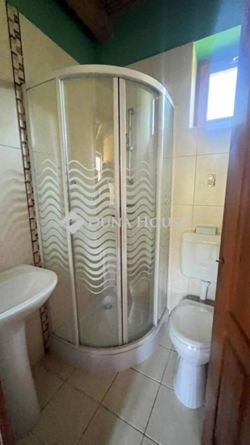 Elosztás: 2 szoba, gardrób, konyha, 2 fürdőszoba, mosókonyhaInnen nyílik a fedett 38 m2-es medenceház a medence mérete: 5,7 x 2,7 m, mélysége 2 m előkészítve -befejezésre vár. Fűtése a háznak vegyes tüzelésű kazán radiátoros hőleadással. A harmadik lakóépület különálló vendégház, lakrész: