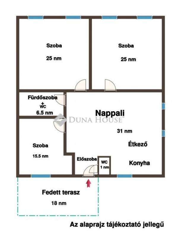 - három szoba (25, 25 és 15.5 nm);