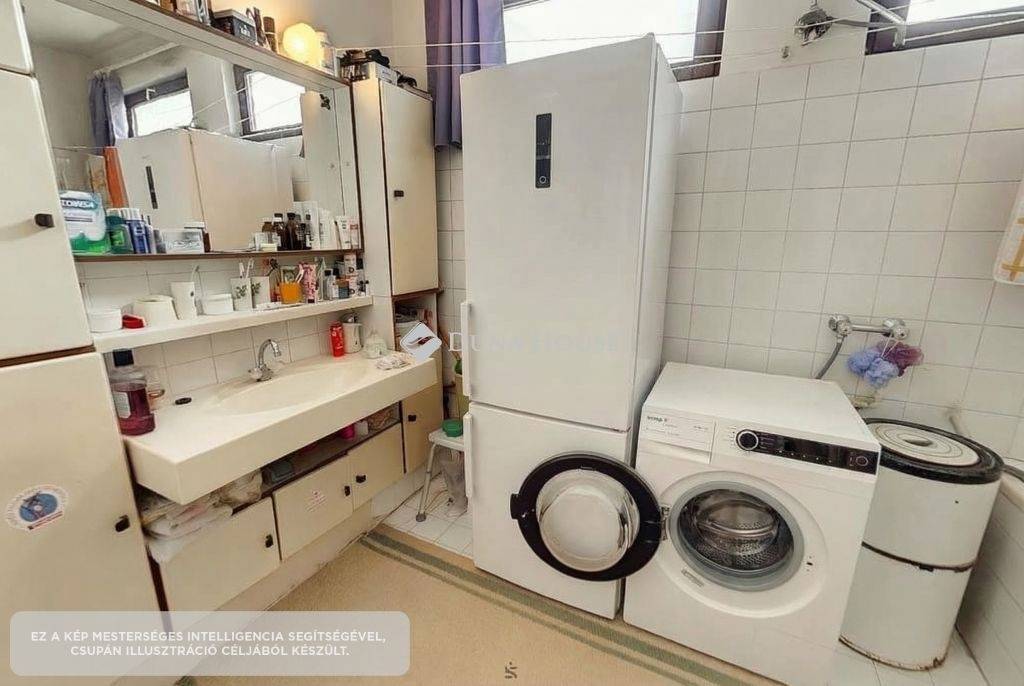 Ezen kívül egy nagyméretű fürdőszoba fürdőkáddal és külön wc szolgálja az itt élők kényelmét.