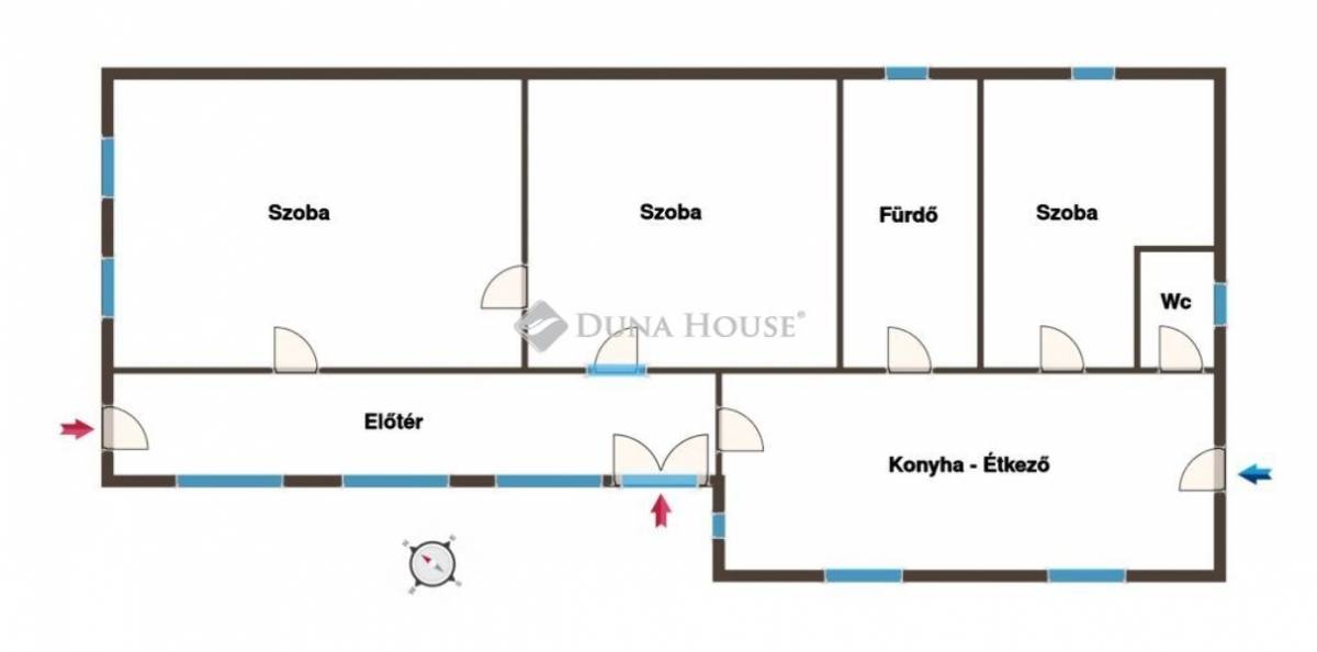 Az ingatlanban 3 különnyíló szoba, egy előtér, egy étkezős konyha, egy fürdőszoba, és egy külön wc helyiségek találhatóak. Elrendezése kitűnő, családosoknak is tágas, kényelmes otthont biztosít. A helyiségek méretesek, jól berendezhetőek, a terek több személy számára is kényelmesen élhetőek.