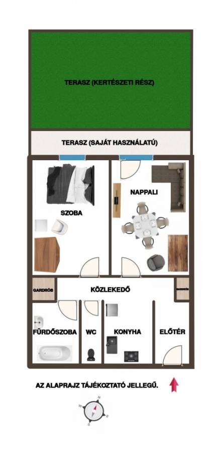 Tulajdoni lapon: 76 m² (lakás + terasz)