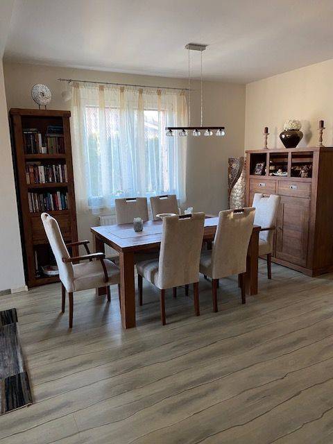 A ház az alábbi helyiségekből áll 3 szoba + amerikai konyha-nappali, étkező, mosókonyha, gardrób, wc, fürdőszoba helyiségekből áll.