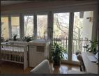 A 7 négyzetméteres teraszról gyönyörű kilátás nyílik a környező zöld kertre.