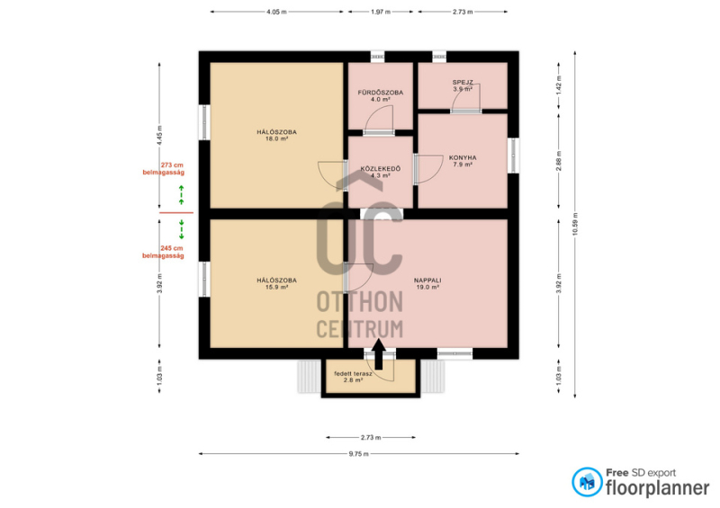 - 2,80 m² fedett terasz