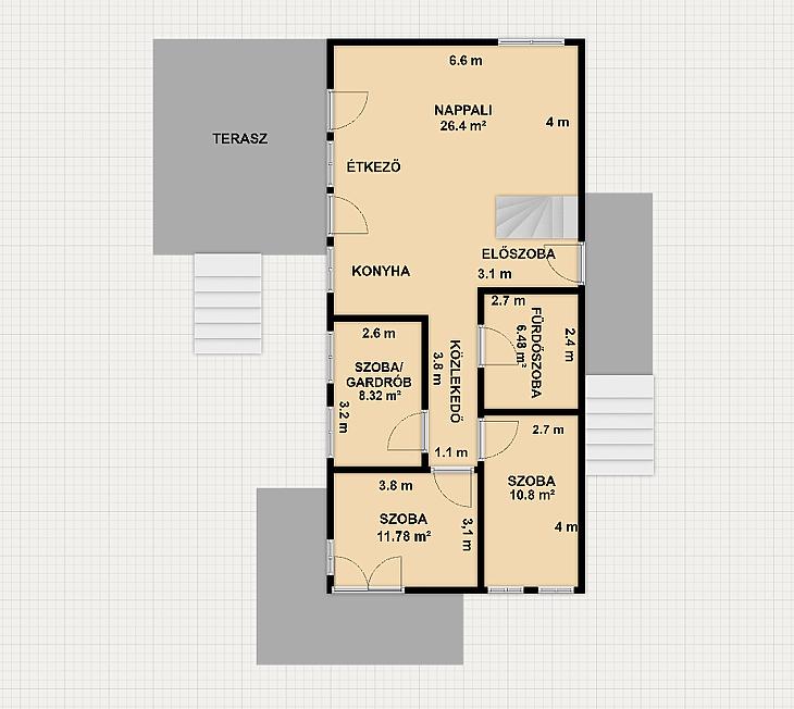 Szuterén: szoba, kamra, mosókonyha + mellékhelyiség, dupla állásos garázs.