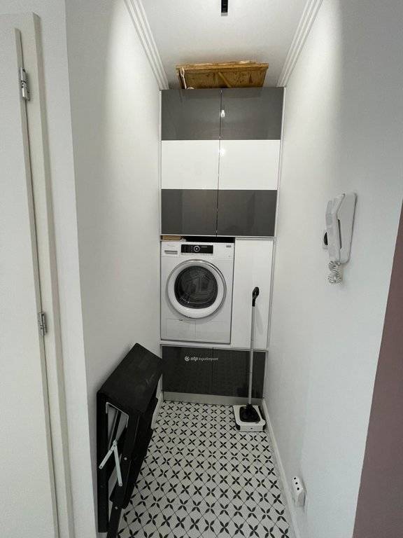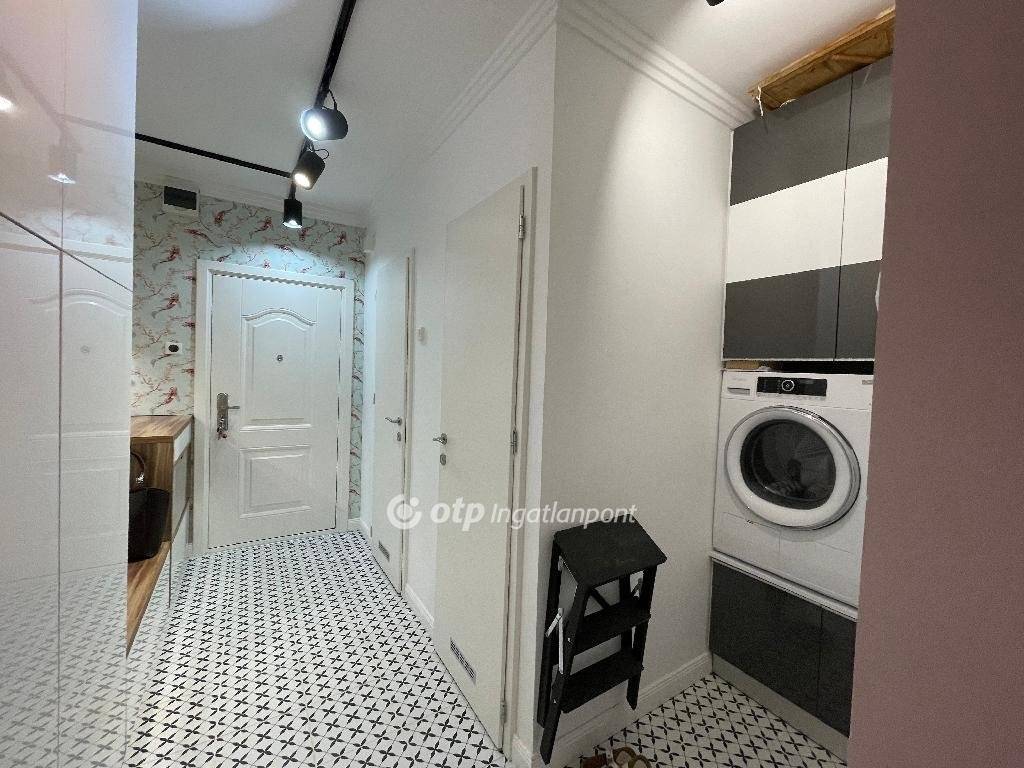 A lakásban magas minőségű, egyedileg tervezett beépített gépesített konyhaszekrény és beépített előszoba szekrény található, ami a vételár részét képezi.