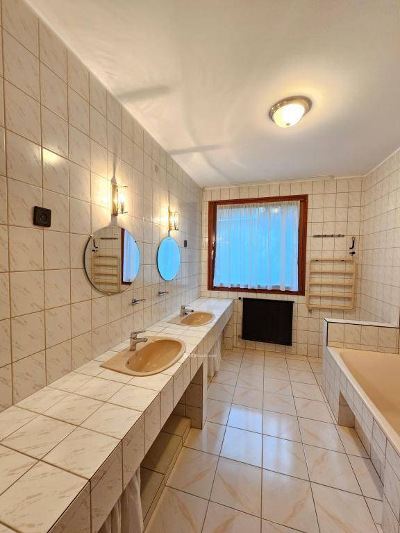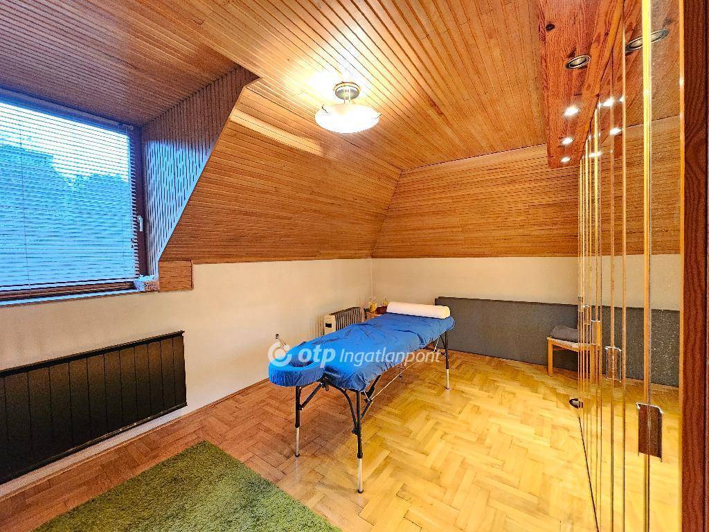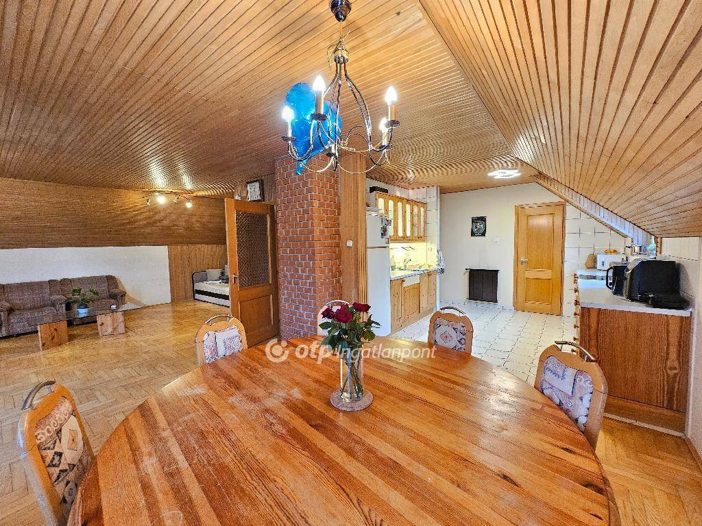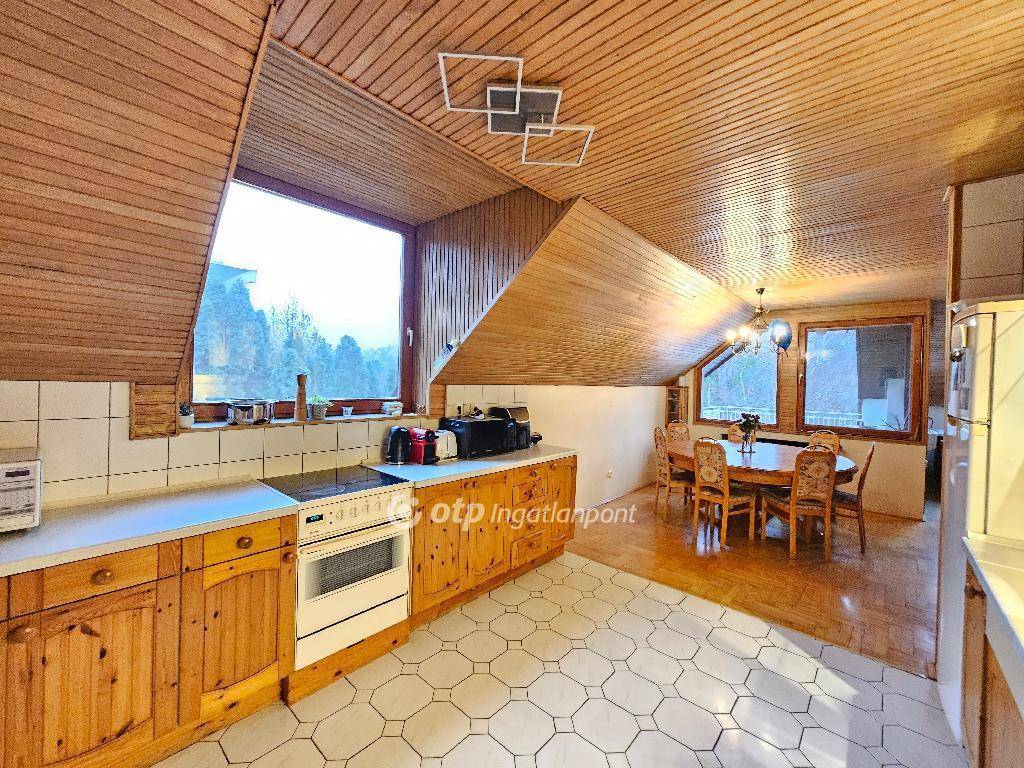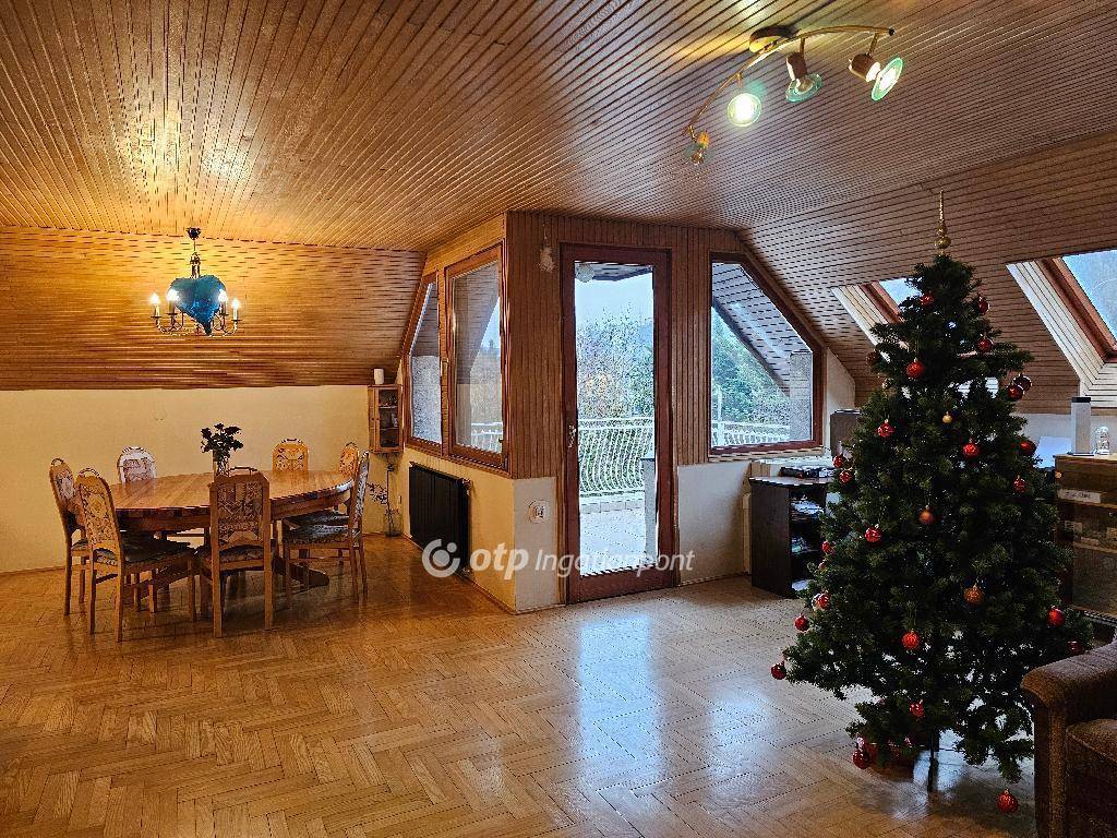 A lakásban két hálószoba, fürdőszoba WC-vel, valamint külön WC található. A fa lambériával burkolt tetőtér különösen meleg, barátságos hangulatot teremt.