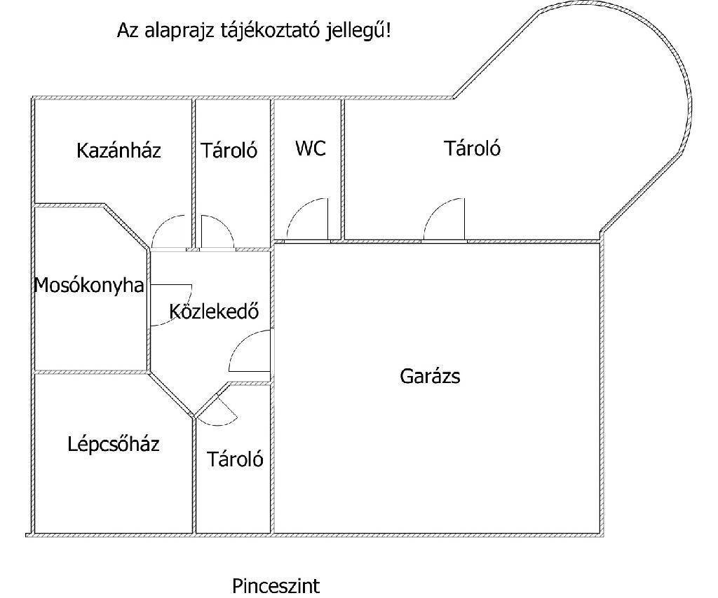 A legalsó szinten, a garázs mögött öt különálló, félszuterén helyiség található (egy nagyobb és négy kisebb alapterületű). Ezek kiválóan alkalmasak tárolásra, hobbihelyiségnek vagy műhely kialakítására.