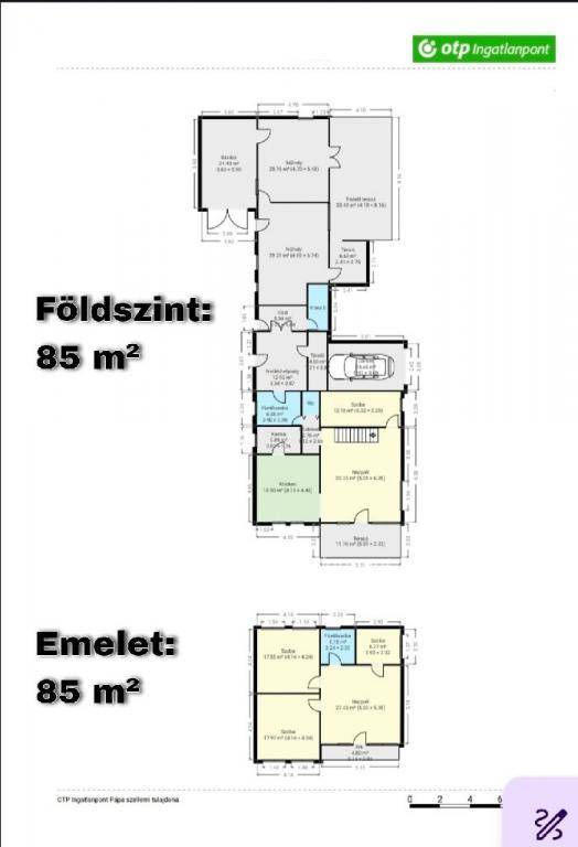 A földszinten tágas nappali, egy külön nyíló szoba, konyha?étkező, kamra, közlekedő, fürdőszoba, külön WC, valamint egy hangulatos előterasz kapott helyet.
