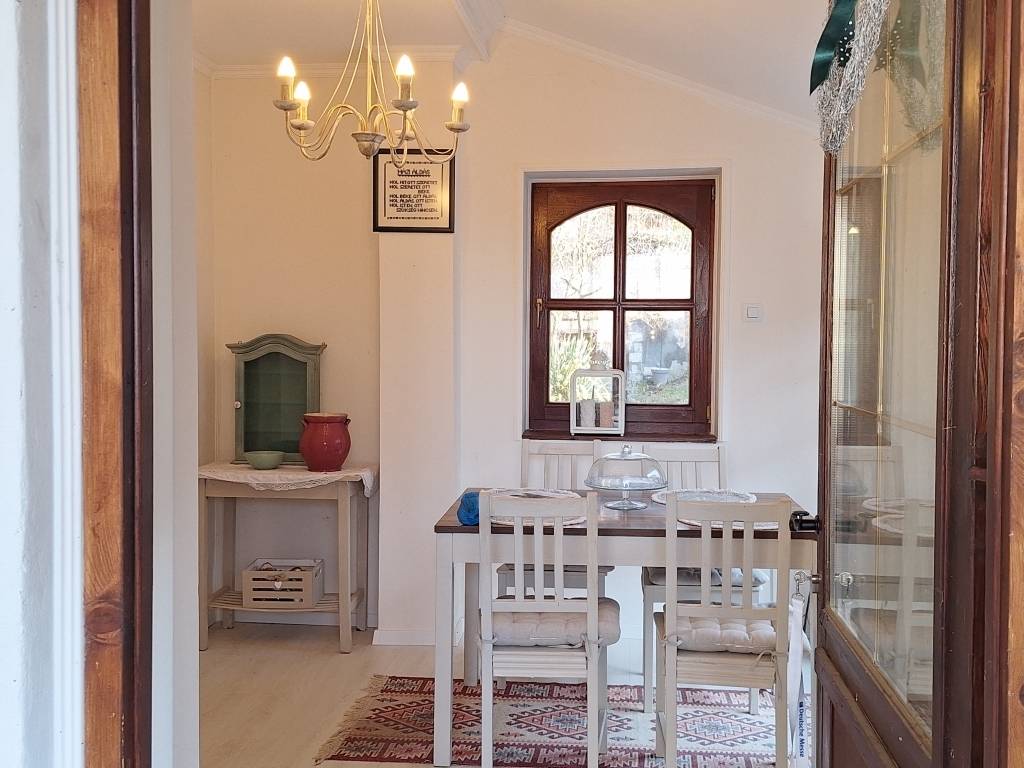 Alcsútdobozon eladó összközműves, igényesen felújított, tornácos parasztház! A kedves, egyedi hangulatot árasztó régi parasztház vályogból és téglából épült. A letisztult stílus, a boltíves átjárók, a fehérre meszelt falak, az egylégtér felüdülést adnak testnek és léleknek egyaránt. A felújítás során téglából hozzáépítettek egy belépőt és 10m2-es étkezőt, így az alapterület 65 m2-re nőtt. Az amerikai konyhát a 21m2-es, kertkapcsolatos nappali sarkában helyezték el, ahol esténként a kandalló tüze melegít. A 20m2-es hálószoba ablakai a szeretettel gondozott kertre néznek. A 4m2-es fürdőszobában kád szolgálja a kényelmet. A tornácból elcsípve egy kicsit napsütötte olvasózugot alakítottak ki. A melegvizet villanybojler szolgáltatja. A kellemes hőmérsekletet télen-nyáron a hűtő-fűtő Gree klímaberendezés biztosítja. Több helyiségben elektromos fali panelek állnak rendelkezésre. Az eldugott hátsó 8m2-es fedett terasz tökéletes hely az ejtőzésre. A hozzáépített, födém nélküli,13m2-es tároló könnyedén átalakítható egy külön bejáratú lakrésszé. A kert végébe vájt pici pince nyaranta hűtőkamraként jó szolgálatot tesz. Az 543m2-es palákkal bekerített kertben az intimitás biztosított.Érdekli ez a csodás ingatlan? Kérem keressen!