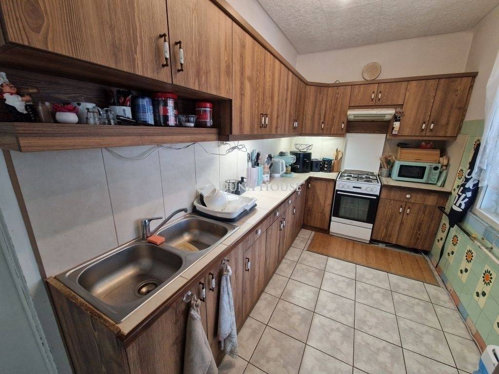 Baja Katonavárosban eladó 152 m2-es kétszintes, félszuterénes családi ház 884 m2 telekkel, több garázzsal, műhellyel.1980 körül épült téglából, beton alapra. A ház két szintes, tetőtere beépíthető (a lépcső is kiépített), illetve az épület egy része alatt félszuterén is kialakításra került. Földszint: előszoba, étkező, szoba, konyha, fürdő-wc, külön wc, lépcsőtér. Az étkező részhez kapcsolódik 15 m2-es fedett terasz is. Az utcáról 20 m2-es szerelőaknás, ipari áramos garázs áll rendelkezésre. Emelet: 2 szoba, amerikai konyhás nappali, fürdő, wc, előtér, fedett terasz, lépcsőtér. Félszuterén: 3 helyiségre tagolt, összesen 29 m2, betonozott padlóval. A ház nyílászáróit a földszinten és az emeleten részben is frissen cserélték REHAU hőszigetelt műanyagra, illetve új redőnyöket is felszereltek, a többi ajtó és ablak fából készült.Az elmúlt években sor került a fűtés korszerűsítésére, Westen kombi kondenzádiós gázkazán adja a meleget radiátoros hőleadókkal, melyek mellett a fölszinten fa tüzelésű kandalló is rendelkezésre áll.A meleg vizet Ariston villanybojler adja az alsó szinten.A víz és szennyvíz hálózat is esett már át cserén a fürdőszobák felújításakor.A kiépített villamos hálózat 3x32A + 1x10A éjszakai áram.Az ingatlan minimális átalakítással két külön bejáratú lakrésszé alakítható, így tökéletes lehet több generáció együttélésére, vendégháznak, illetve albérleteztetési célokra is. A ház mellett található 40 m2-es dupla garázs, emellett 20 m2-es garázs, tároló is helyet kapott. A félszuterén kiváló barkács helyszín, valamint tárolóként is jól hasznosítható.A ház főúthoz közel, de nyugodt környezetben helyezkedik el. A közelben minden fontos szolgáltatás megtalálható: iskola, óvoda, buszmegálló, gyógyszertár, Spar és Aldi áruházA ház nem lakott, kifizetés után nagyon rövid időn belül költözhető!Kiváló ár/érték arányú ingatlan mely stabil szerkezetű, számos átalakítási és hasznosítási lehetőséget rejt. Ideális választás nagyobb családoknak, több generáció számára vagy befektetési célra.Érdeklődés esetén keressen bizalommal, nézzük meg együtt!