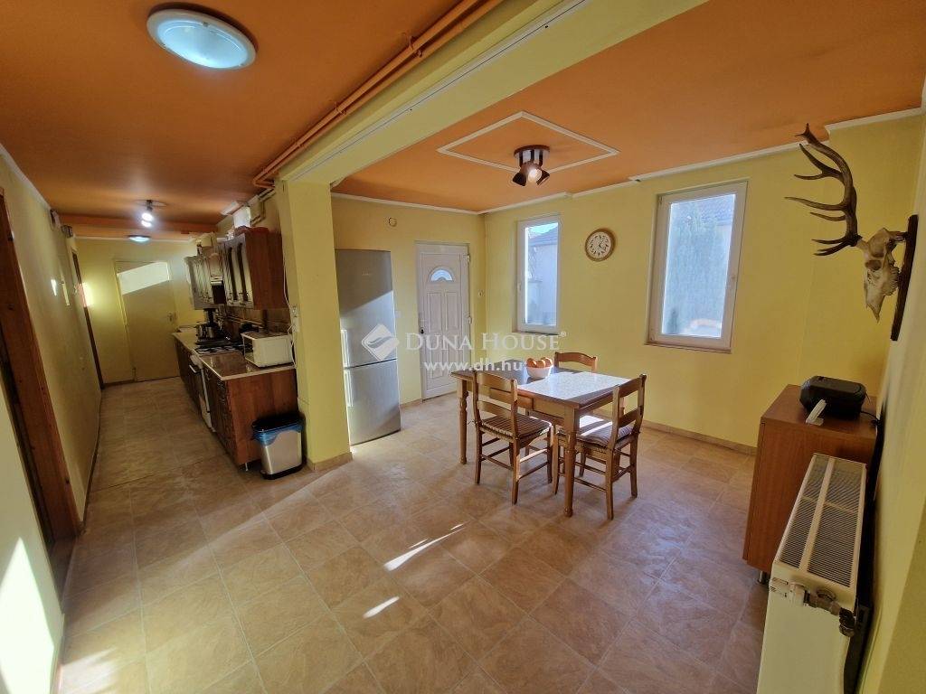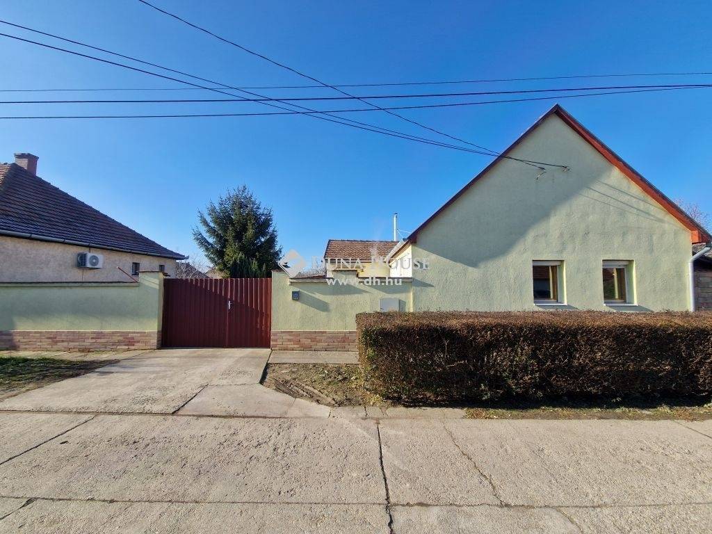 Kalocsa déli részén eladó 104 m2-es családi ház 506 m2 parkosított telekkel.A ház az 1950-60-as években épülhetett, részben vegyes, részben teljesen tégla építésű. Az eredeti épületet az idők folyamán többször bővítették.Kialakításra került benne 3 szoba, nappali, konyha, kamra, tágas étkező, fürdő-wc. A nappalihoz 16 m2-es fedett terasz kapcsolódik hosszú tetővel, mely alatt az udvar felé egy 23 m2-es autóbeálló készült.Az épület folytatásában található a 35 m2-es garázs, valamint egy 20 m2-es tároló, mely akár második garázsként is használható.A házba 2 bejáraton keresztül, valamint a garázson át is bejuthatunk.Az udvar szépen parkosított, hangulatos, napos.A házat rendben tartották, 10 éven belül került sor az étkező rész hozzáépítésére, a fűtés rendszer felújítására, külső és belső nyílászárók cseréjére, fürdő felújításra. A tető jó állapotú, egyenes, cserép fedésű, lécezése szintén esett már át cserén. Az utcai homlokzat hőszigeteléssel ellátott. A belső nyílászárókat fára cserélték, a külsők jelentős részét hőszigetelt műanyagra. A fürdőszobában akril sarokkád és zuhanyzó is kiépítésre került.A fűtés a néhány éves Baxi kombi kondenzációs gázkazánnal, valamint a vegyes tüzelésű Totya kazánnal (új a kéménye) is lehetséges. A meleg vizet jelenleg gázbojler biztosítja, de ez átköthető a gázkazánra is.A kiépített elektromos hálózat 1x32A + Fí (érintésvédelmi) relé, a vezetékek minimum részben cserélve lettek.Érdeklődés esetén keressen bizalommal, nézzük meg együtt!
