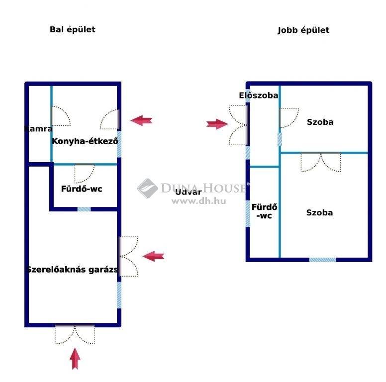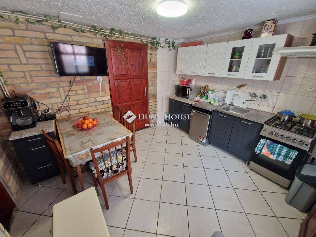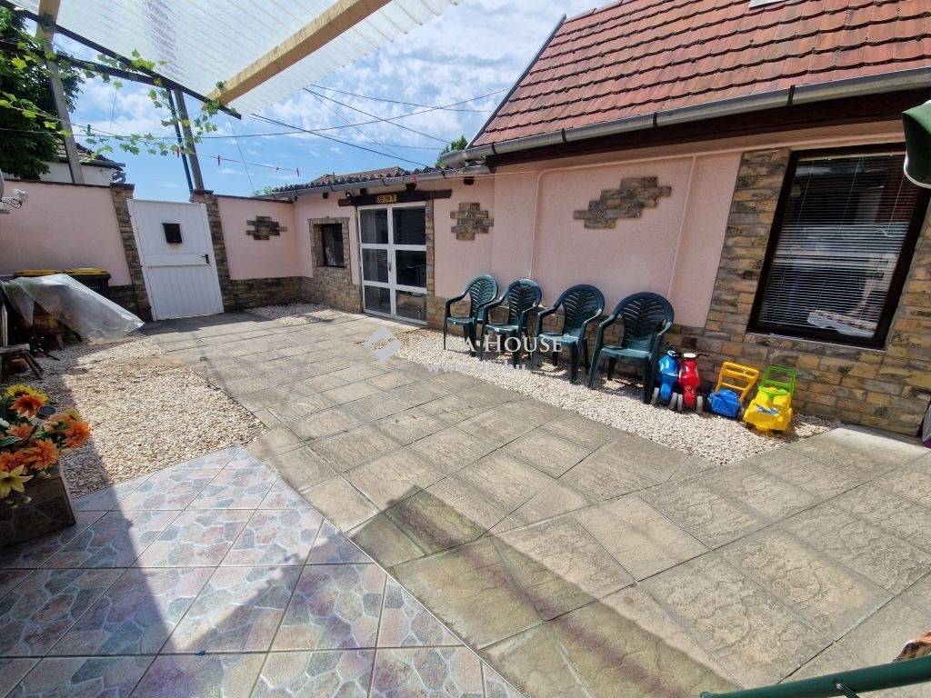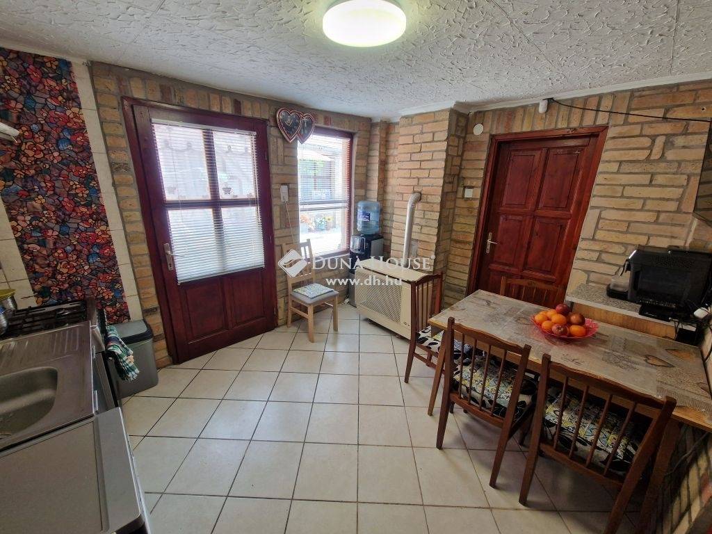 Baja kiscsávolyi csendes részén eladó 65 m2-es, 2 szobás ház ~120 m2 telekkel, szerelőaknás garázzsal a főút közelében.1960 körül épült, szerkezete vegyes. Teljesen körbe kerített. A telken külön bejárattal a ház mögött egy újabb építésű családi ház található. A két ingatlan között semmilyen kapcsolat nincs, minden közmű és egyéb is saját mindkét ingatlanban. A ház hátsó fala alávágással vízszigetelve, valamint EPS külső hőszigeteléssel ellátva. A tető kerámia szalagcseréppel fedett, a bal épületrészen cserélték már a cserepezést néhány éve.A ház két épületből áll, egyikben a konyha-étkező, kamra, fürdő-wc és garázs (szerelőaknás) található. Másikban előszoba, 2 szoba, fürdő/wc kapott helyet. Az épületek között ~4 méter távolság van, melyet egyszerűbb megoldással is fedetté lehet tenni szükség esetén.Jó állapotú ingatlan, a jobb felében új a fürdőszoba, a víz és szennyvíz vezeték, illetve mindkét fele frissen festett-kívül és belül is, valamint az utcafront is. Ezen kívül új a teljes villamos hálózat (1x20A + Fí relé kiépített) cserélve lett, a tetőn a lécezés kijavítva, új a bádogozás a kémények körül, illetve kamera és Paradox riasztó rendszert is felszereltettek.A falak egyenesek és szárazak, a fürdőt és wc-t a bal felén már felújították (kád csere, réz csövek, Geberit tartály, Alföldi wc), szép a lapozás a konyhában, ahol víztisztító is fel van szerelve.A nyílászárókat is cserélték, mindenhol minőségi fa ajtók és ablakok kerültek beépítésre. A helyiségek aljzata betonozott, a szobákban új padlószőnyeg borítás található, az előszobában és az újabbik fürdőben modern fa hatású PVC a burkolat.A fűtés gázkonvektoros (a fal oldali fürdőben gázmelegítő, az újabb fürdőben elektromos fűtő), azon kívül Midea hűtő-fűtő klíma is rendelkezésre áll.A meleg vizet a bal oldali részen Vaillant átfolyós gázbojler, a jobb oldali részen új villanybojler biztosítja.A hangulatos kis udvar járólappal és zúzott kővel borított. Mindkét épület és a garázs is elérhető innen, mely frissen gipszkartonozott.A környék csendes, nyugodt, a belváros kellemes sétával is kényelmesen elérhető. Érdeklődés esetén keressen bizalommal, nézzük meg együtt!