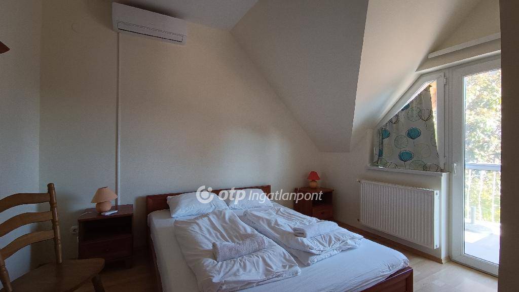 Eladó egy 4 apartmanos apartmanház emeleti 57 m2-es lakása. Az apartmanház minden lakása kétszobás, szobánként klimatizált. Az apartmanok világosak, napfényesek, de a nyári forróság ellen redőnyökkel szerelt. Fűtésük központi gázkazánnal történik. Mindegyik szobához tartozik egy zuhanyzós fürdőszoba és egy erkély. A lakóterek központi helyisége az amerikai konyhás nappali.