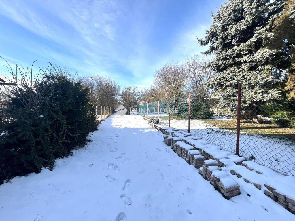 A telken található egy bruttó 3×6 méteres komfortos szendvicspanel nyaralóház, amely a leendő főépülethez tökéletesen illeszkedik, valamint 2*2,5 m-es fém kerti tároló. A növényzet gazdag és változatos: mogyoróbokor, körtefa, almafa, meggyfák, kajszibarack és vadszilva adja a kert természetes hangulatát. A saját, 5 méter széles bekötő út burkolásra előkészített, a telek pedig térképes melléklettel is rendelkezik.