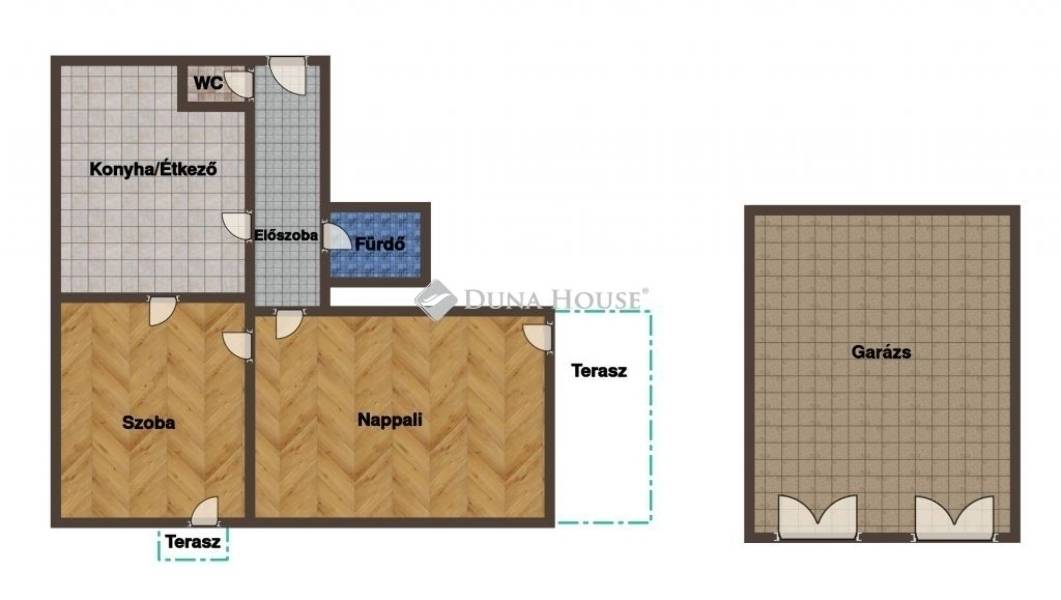 A lakás praktikus elosztású: különálló szoba, tágas nappali, konyhaétkező, valamint külön WC és fürdőszoba biztosítja a kényelmes mindennapokat.