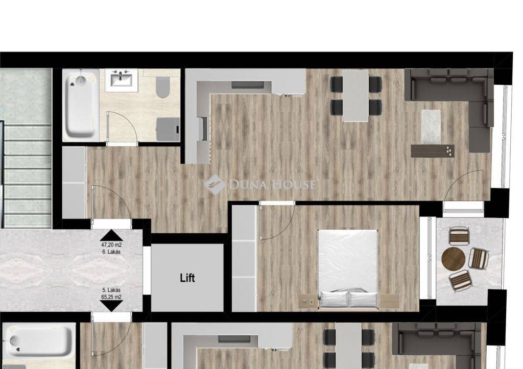 A 47 négyzetméter és 65 négyzetméter közötti méretű otthonok optimális elosztással és tájolással rendelkeznek, garantálva a magas színvonalú életminőséget.