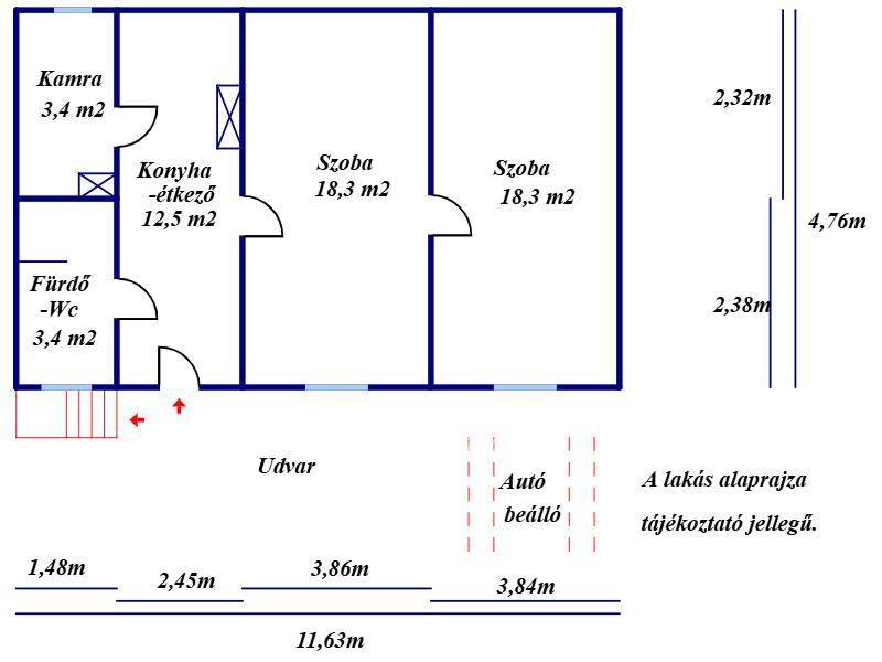 Bács-Kiskun vármegye, Kecskemét, Belső-Bethlenvárosban 58 m2 nagyságú lakás, közös használatú udvarban eladó. Az 1960-as években épült összkomfortos lakás két szobából, egy konyha-étkezőből, egy fürdőszoba-WC-helyiségből és egy kamrából áll. A helyiségek közül a szobák laminált padló-, a többi helyiség járólap borítást kaptak. Az épület vegyes falazattal, gipszkarton álmennyezettel ellátott stukatoros fa födémmel és fa tetőszerkezeten égetett cserepezéssel készült, csatornával körben ellátott. A homlokzat felújított, kőporozott. A ház korábban teljes felújításon esett át: a falak gipszkarton borítást kaptak, a külső nyílászárók műanyagra lettek cserélve, redőnnyel és szúnyoghálóval ellátva. A belső nyílászárók eredetiek, normál állapotú fa szerkezetűek. A fürdőszoba és a konyha újraburkolása megtörtént. Az összközműves ingatlanban az egyfázisú villany (16 Amper) Fi-relével és körönként rendezett kismegszakítókkal, a vezetékes víz- és a gáz-ellátás saját mérőórával, valamint a csatorna rendelkezésre állnak. Az otthon melegét és a melegvíz-ellátást Ariston kombi gázkazán biztosítja radiátoros hőleadással. Alternatív fűtéshez két vegyestüzelésű kémény, a melegvíz egyéb kivételéhez Hajdú villanybojler is beépítésre került. Az ingatlanhoz saját külső padlásfeljáró és autóbeállóval kialakított előkert tartozik. A tágas udvaron a lakásokhoz tartozó garázsok kerültek felépítésre, több cég (ügyvédi iroda), valamint néhány lakás bejárata is innen közelíthető meg, a lakóközösség kiváló. Az ingatlan frekventált belvárosi helyen, de csendes, nyugodt környezetben helyezkedik el. Az utca felől, a polgári stílusú homlokzat vonalában zárható, gépjárművek behajtására is alkalmas kapubejáró létesült. A lakás elhelyezkedése kiváló, a közelben pár száz méteren belül Polgármesteri Hivatal, multiáruház, élelmiszerbolt, iskola, óvoda, gyógyszertár, autóbusz-állomás elérhető. Az ingatlan jogilag rendezett, jelenleg nem lakott, birtokba adás a kifizetést követően azonnal lehetséges. A lakásban található beépített konyha- és egyéb bútorzat igény szerint a vételár részét képezheti. A hirdetés tájékoztató jellegű, az ingatlanról pontos adatokat a megtekintést követően a tulajdonos által elmondottak alapján tudunk garantálni! A vásárlás finanszírozásában az OTP kedvezőbb kamatozású hitelkonstrukcióival, egyéb banki termékek lehetőségével tudunk segíteni, díjmentesen, sorban állás nélkül! Az adásvételi szerződés lebonyolításához korrekt ügyvédi közreműködést tudunk ajánlani. Amennyiben felkeltettem érdeklődését, hívjon bizalommal! Eladó ingatlanokat keresünk meglévő és külföldi partnereink számára!
