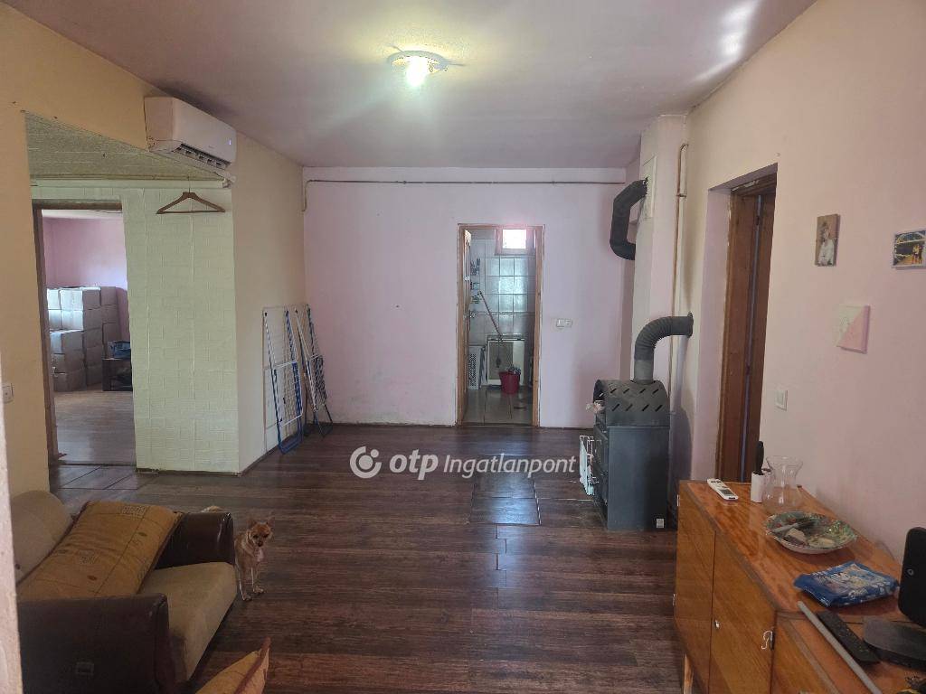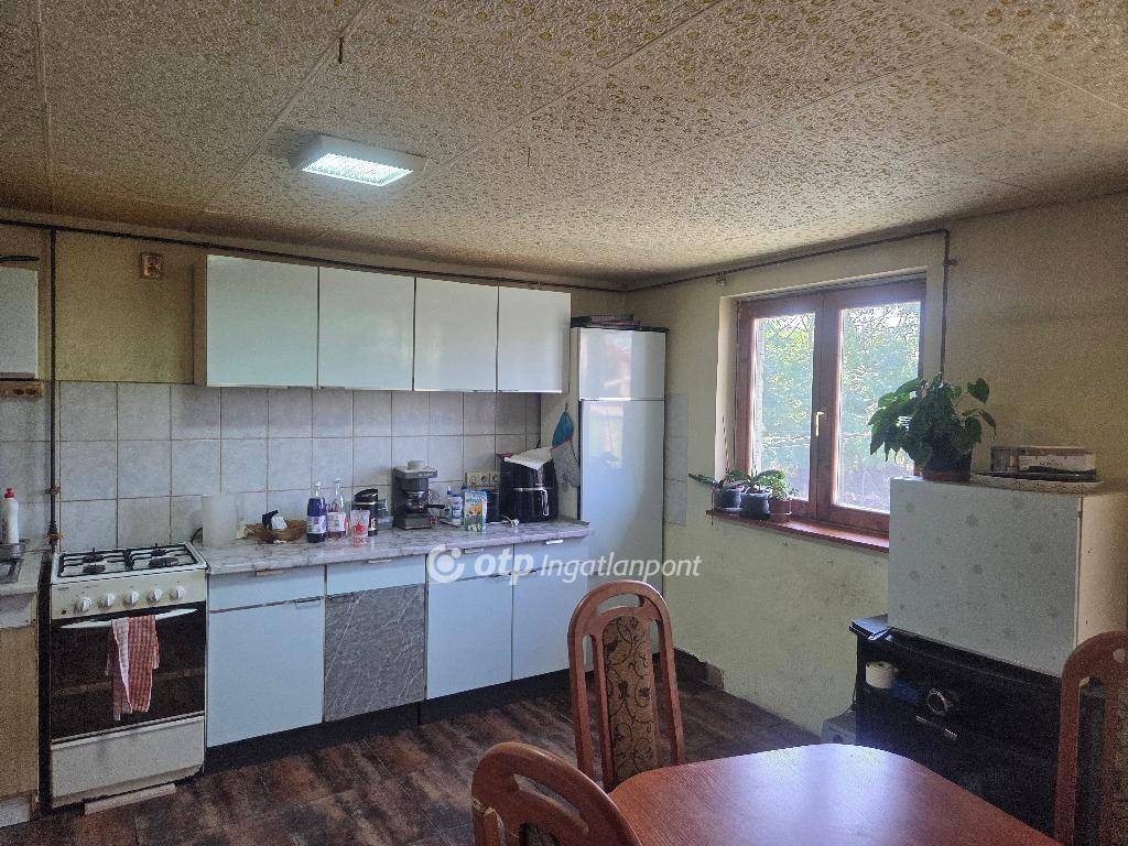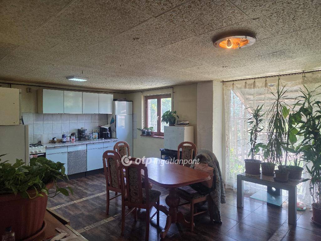 A földszinten található egy nagy üveges ,és világos nappali ,amerikai konyhás étkező,3 különnyíló nagy szoba ,kis kamra,fürdőszoba wc-vel. Az otthon melegét jelenleg kandalló és hűtő-fűtő klíma biztosítja.2025 januárjában a tető szigetelése megtörtént.