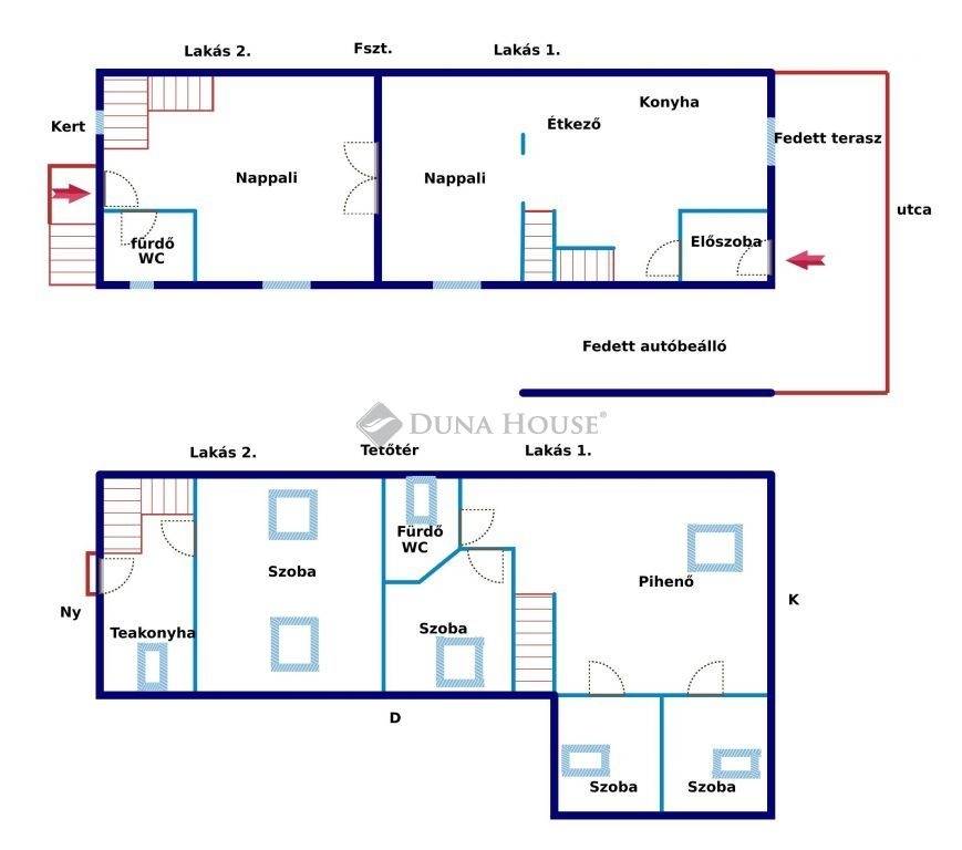 - két külön lakrész, igény szerint összenyitható
