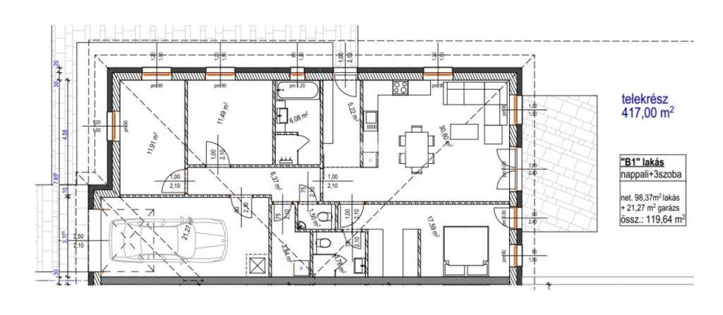 - Élhető telek méretek, 15 m2-es fedett teraszok