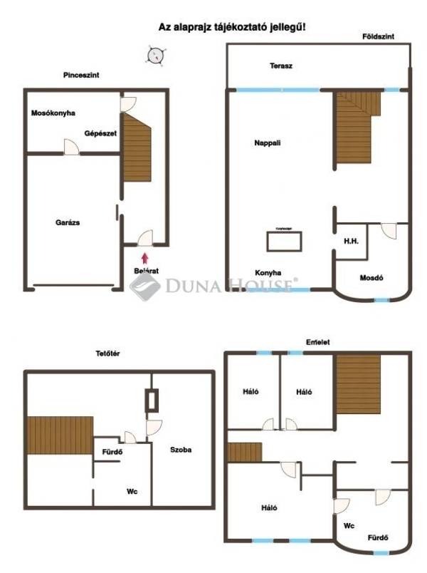 Pinceszint: kényelmes belső bejárat, garázs, mosókonyha, tároló, gépészet