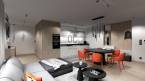 A modern, egybenyitott nappali-konyha-étkező tér bőséges természetes fényt kap, amely tovább fokozza az otthon világos és barátságos atmoszféráját. A letisztult vonalvezetésű konyha elegáns kialakításával tökéletes helyszíne a közös étkezéseknek és a meghitt pillanatoknak.