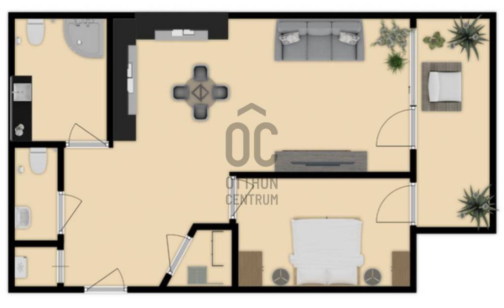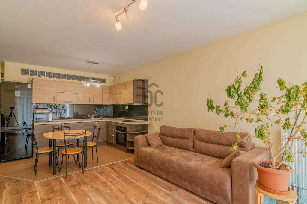 Az ingatlanhoz tartozik egy tágas és világos amerikai konyhás nappali, egy hálószoba,fürdőszoba és wc, egy különnyíló wc + egy 6 m2-es erkély. A konyha jól fel van szerelve ( mosogatógép, páraelszívó, sütő, főzőlap). A lakás kiválóan felszerelt tárolókkal, a külön gardróbon kívűl plusz kis tárolóban helyezték el a gázkazánt.