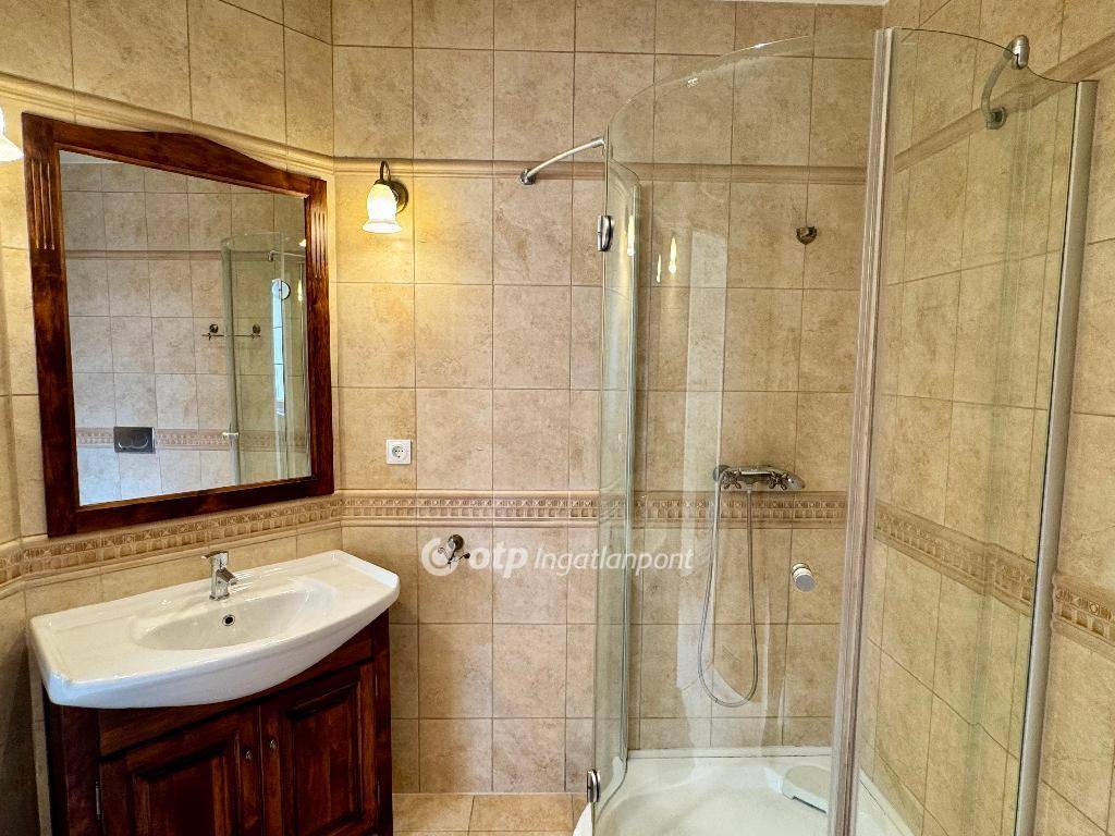 A fürdőszoba az ingatlanon belül található, emellett az ingatlanon kívül, néhány lépésre egy külön mosdóhelyiség is megtalálható.