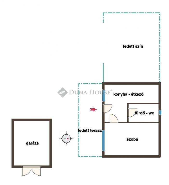 A telken található még egy 15 m2-es garázs és a ház hátsó részéhez épített 25 m2-es fedett szerelőaknás szín.