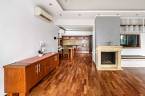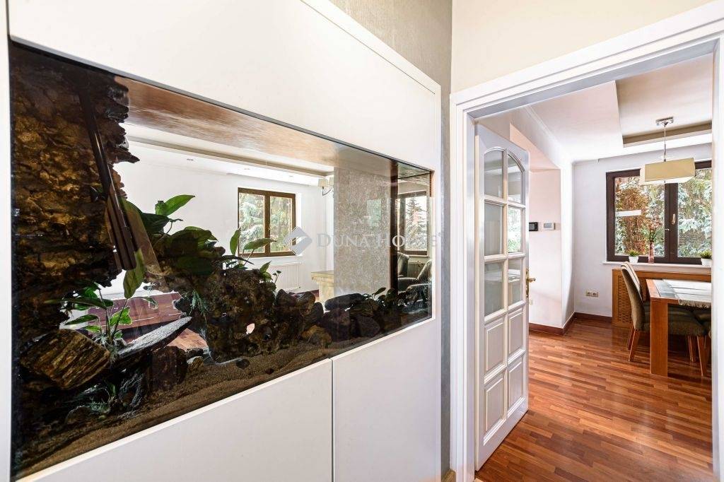 A földszinten található egy tágas amerikai konyhás nappali étkezővel, melynek központi eleme a márványkandalló, valamint az előtér és nappali között átláthatóságot biztosító akvárium.