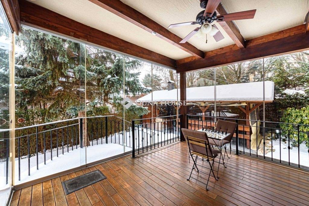 Budapest, 11.kerületében Sasadon, csendes, zöld utcában, a Beregszász úton eladó nettó 340 m2 lakóterülettel rendelkező ikerház kiváló elosztással, napsütéses terekkel, nagy -és kis méretű különböző tájolású teraszokkal, hangulatos nyári konyhával, fenyőfák ölelésében.